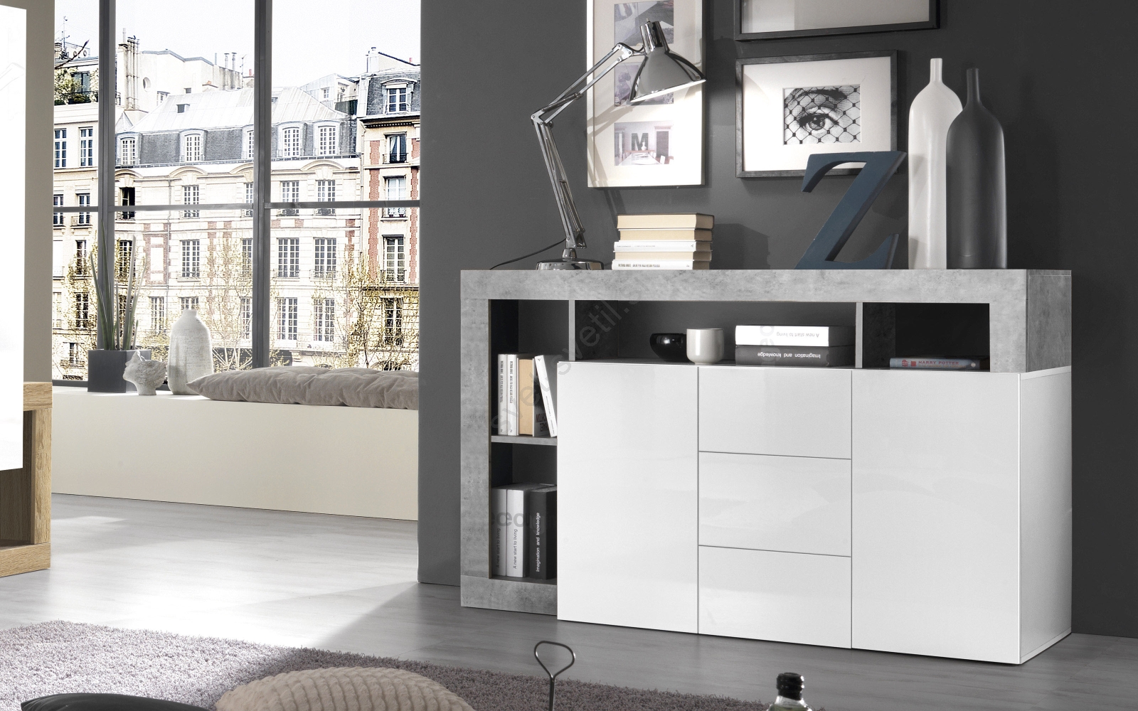 • Komoda LENOR bela/siva beton
