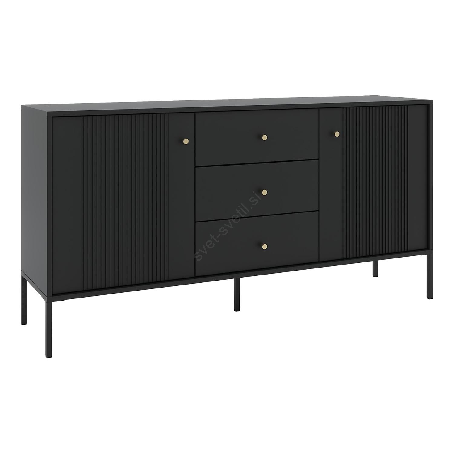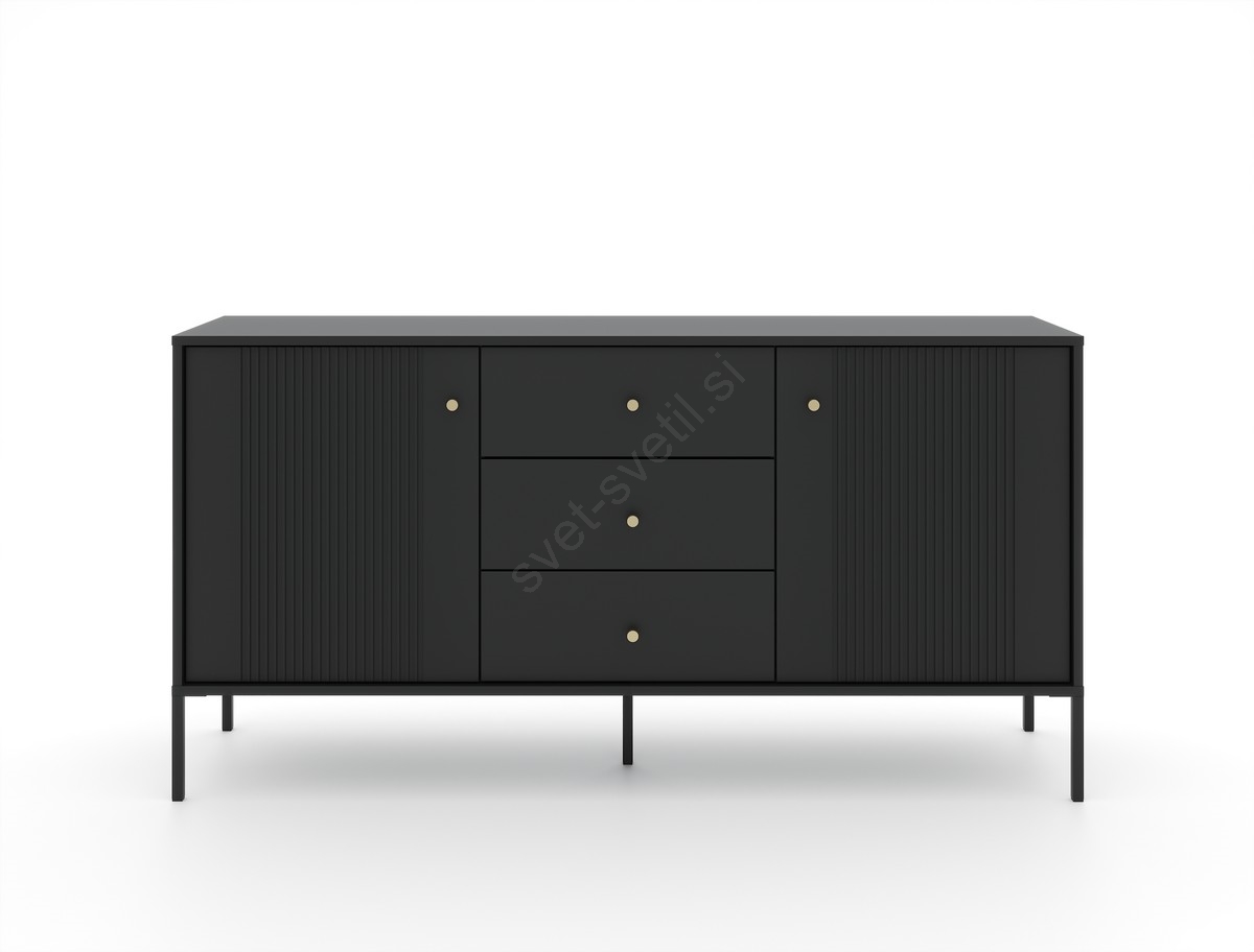 • Ima tri predale na sredini in dve polici z vrati z navpičnim rebrastim vzorcem.