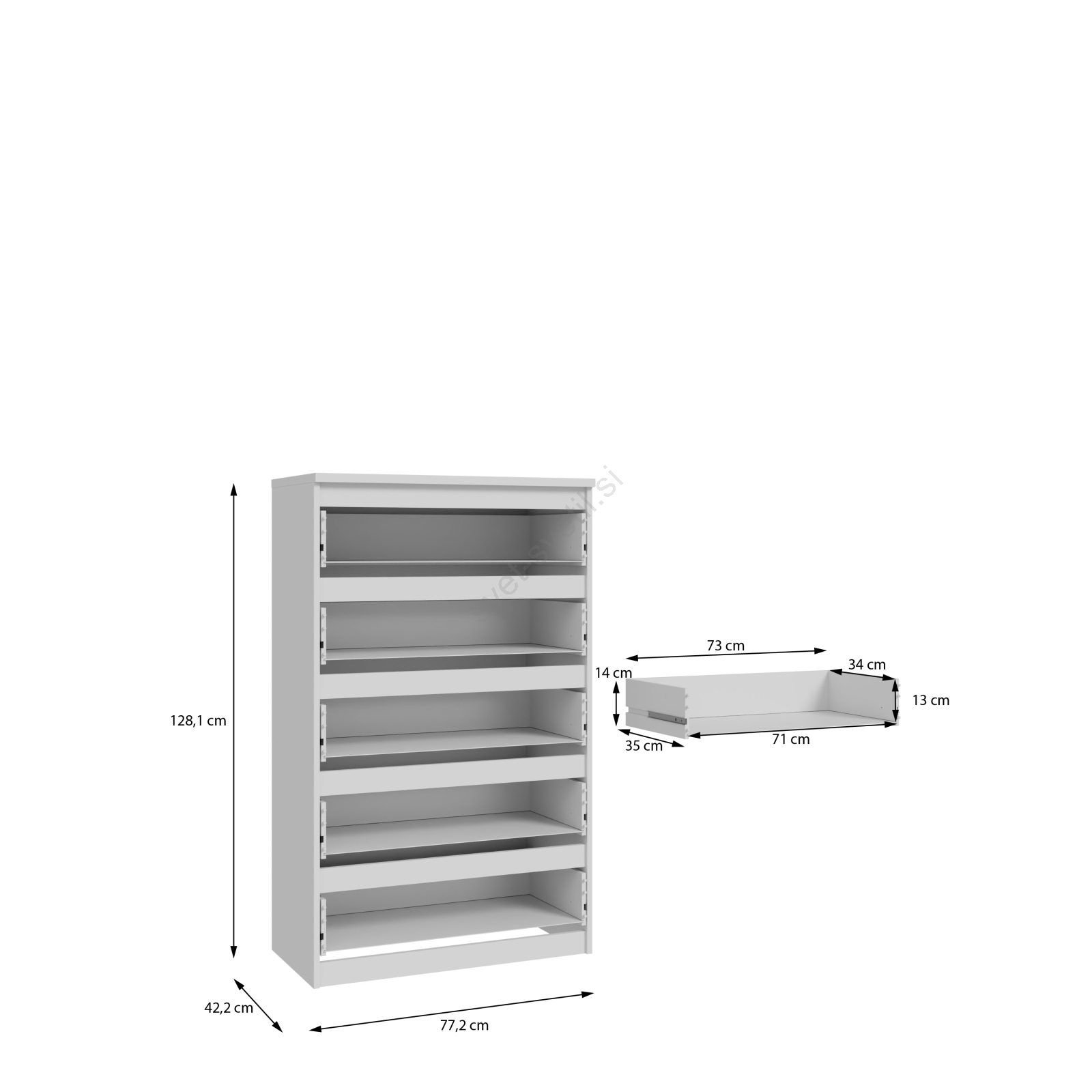 • Zaradi predalov ponuja velikodušen prostor za shranjevanje in organizacijo predmetov za vsakodnevno uporabo.