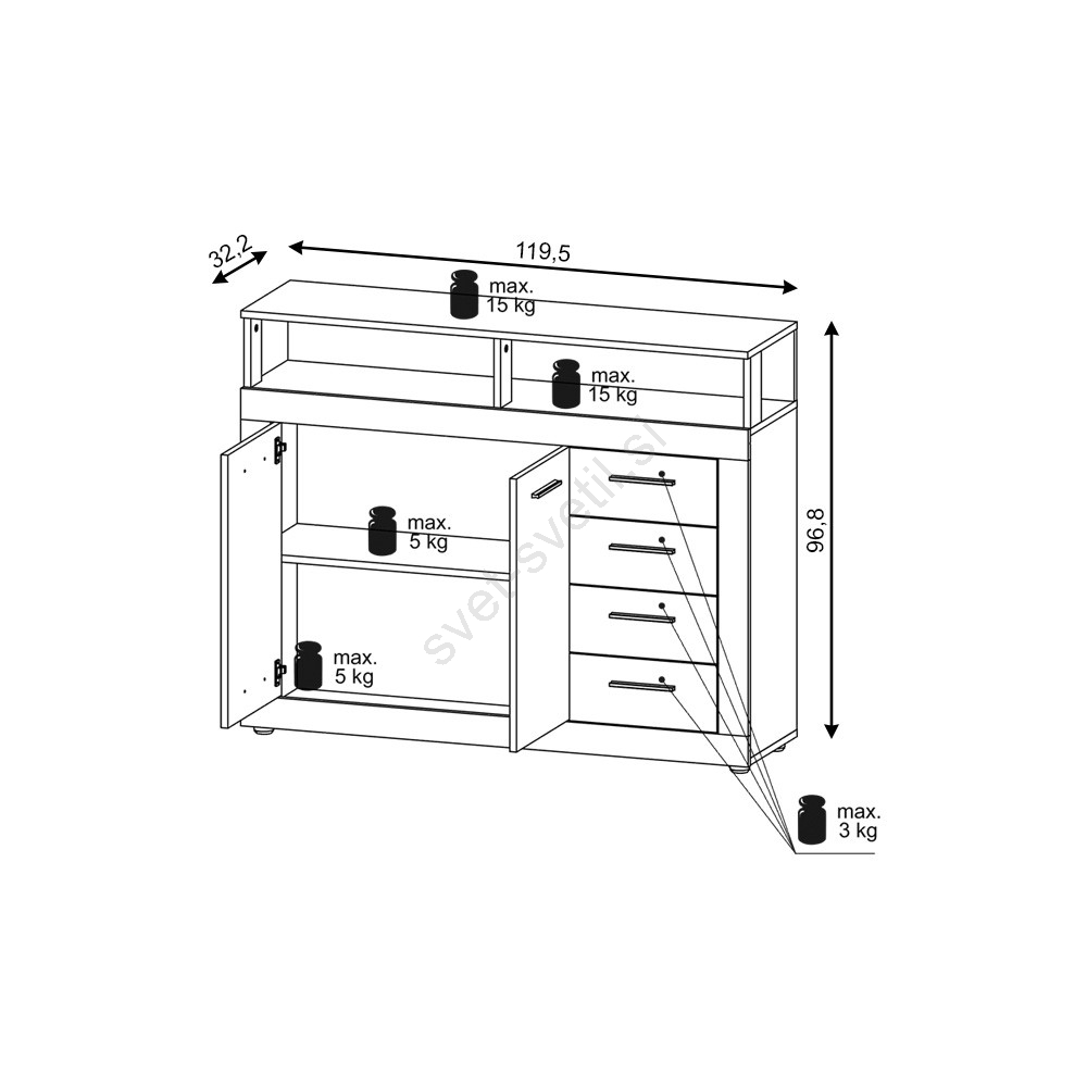 • Zgornja plošča je dovolj prostorna za odlaganje dekorativnih predmetov, elektronike ali drugih potrebščin.