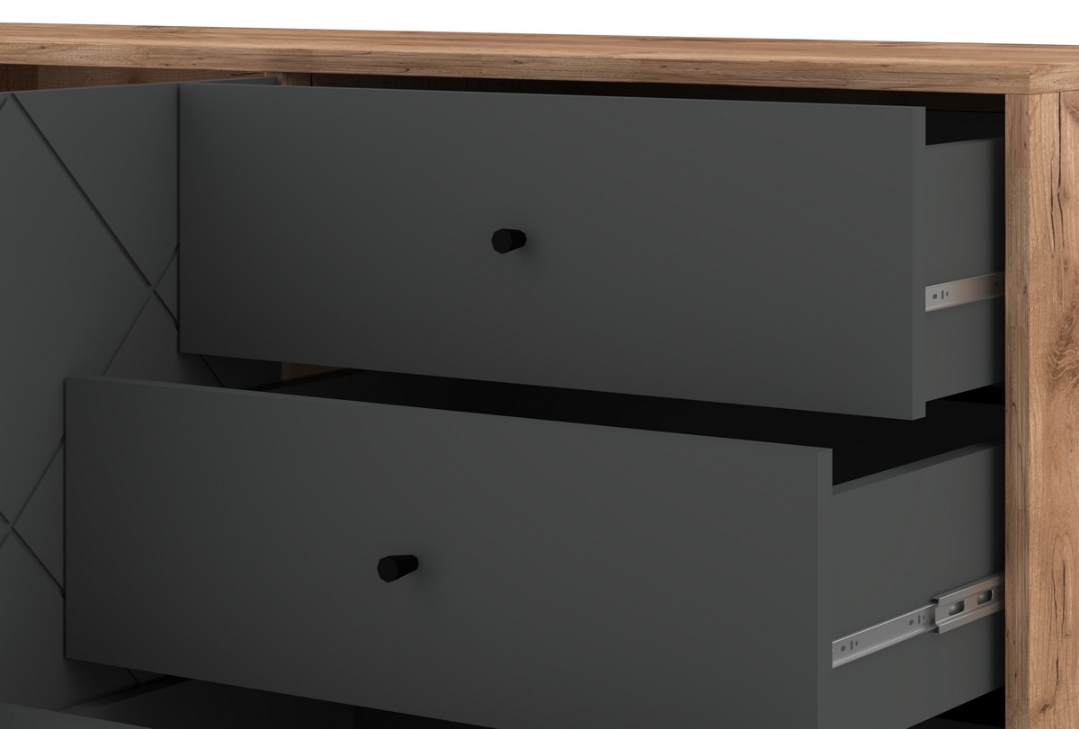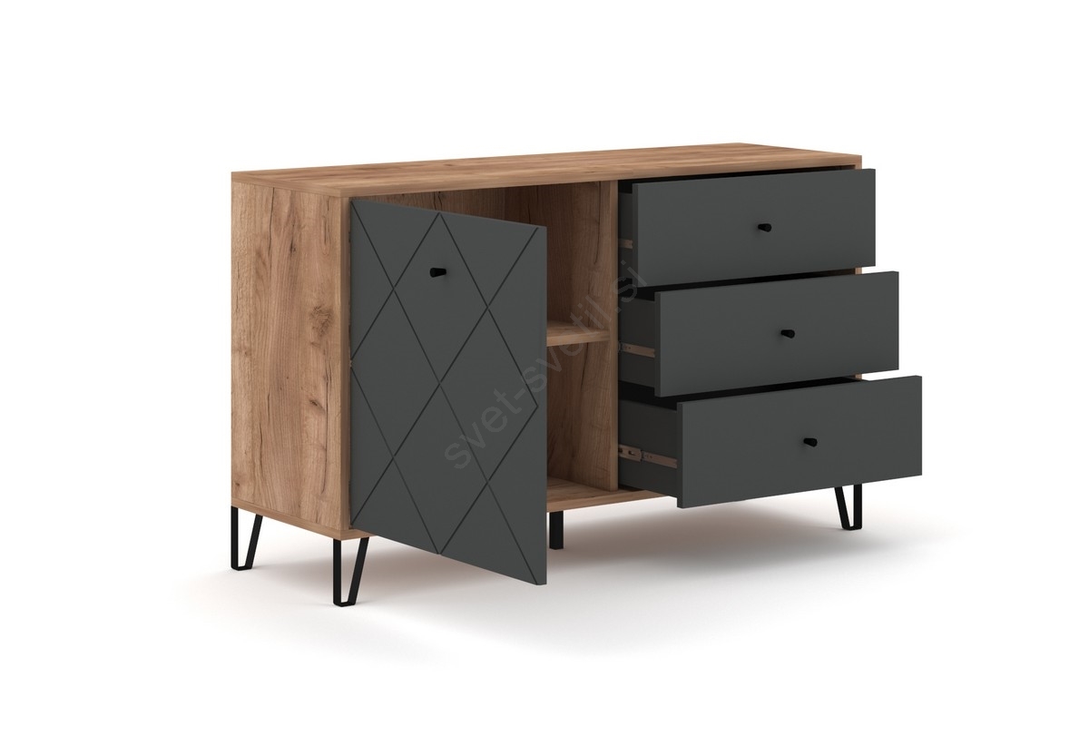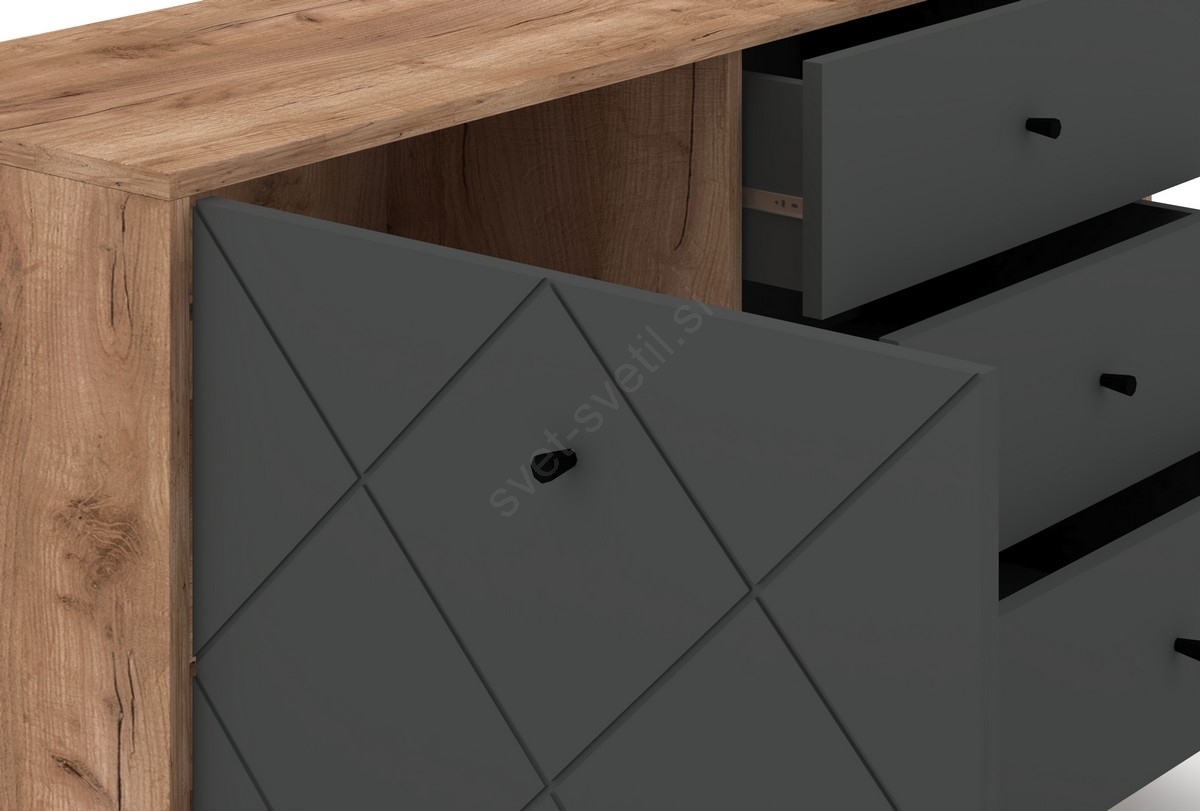 • Ima ena vrata na levi strani in tri predali na desni strani za pregledno shranjevanje vaših stvari.