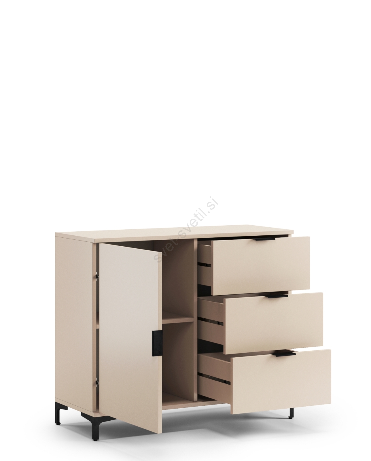 • Pohištvo je izdelano v loft stilu in ga odlikujejo kovinske noge ter ročaji, ki mu dajejo dodatno industrijsko noto.