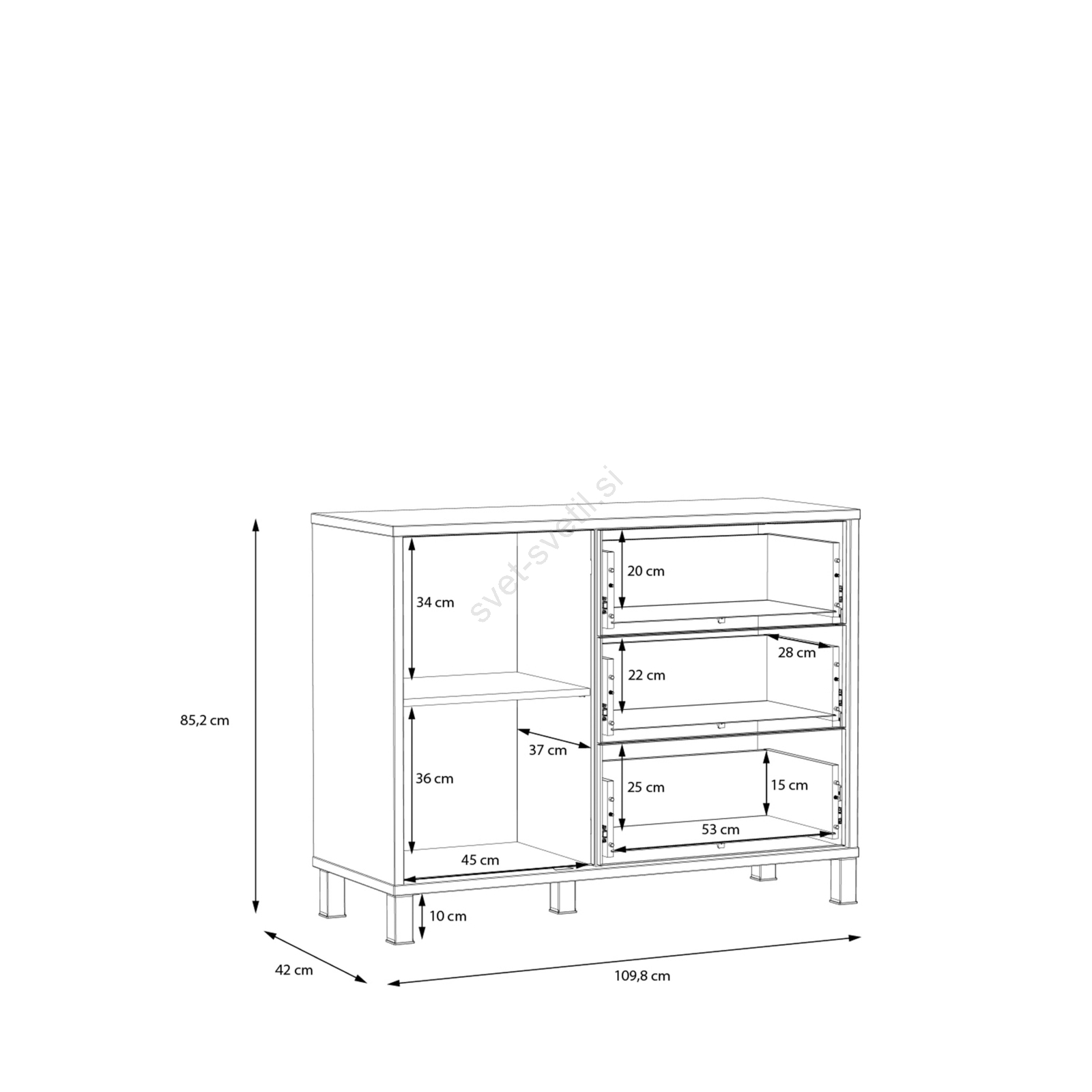 • Zgornja plošča je dovolj prostorna za shranjevanje dekoracij, elektronike ali drugih potrebščin.
