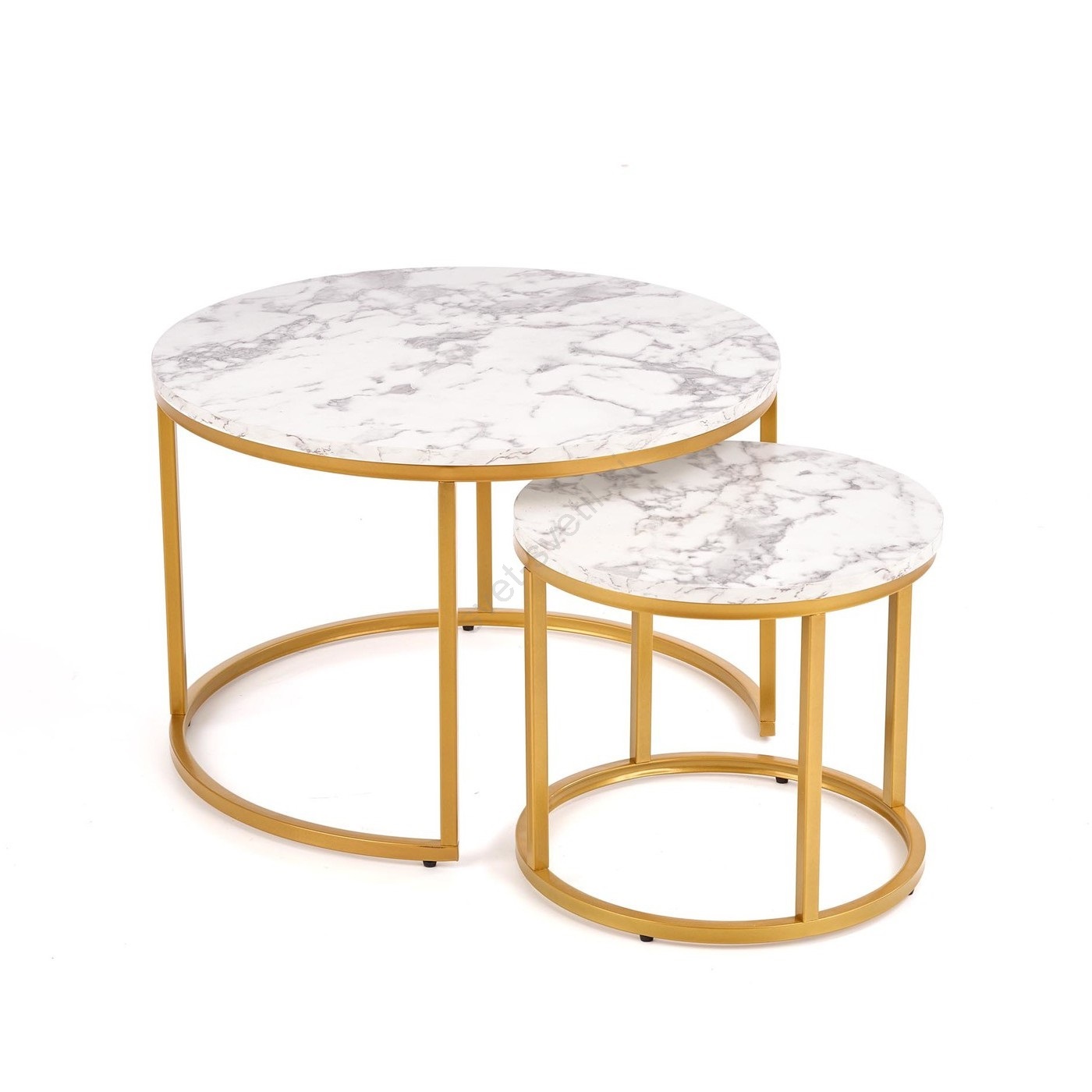 Komplet 2 konferenčnih mizic PACILA, marmor dekor/zlata