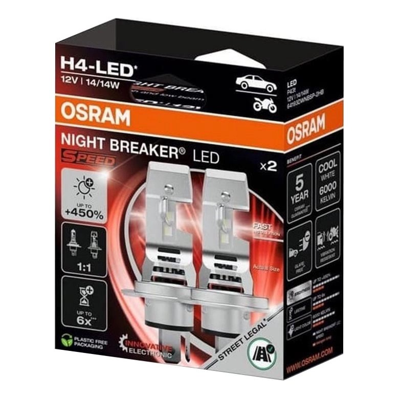 • Komplet 2x LED avtomobilskih žarnic NIGHT BREAKER SPEED H4 P43T/14W/12V 6000K - Osram