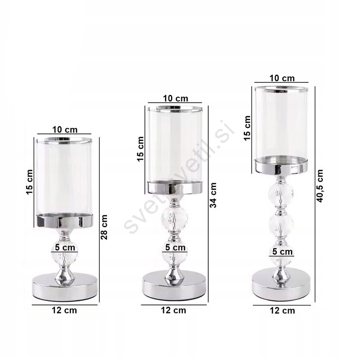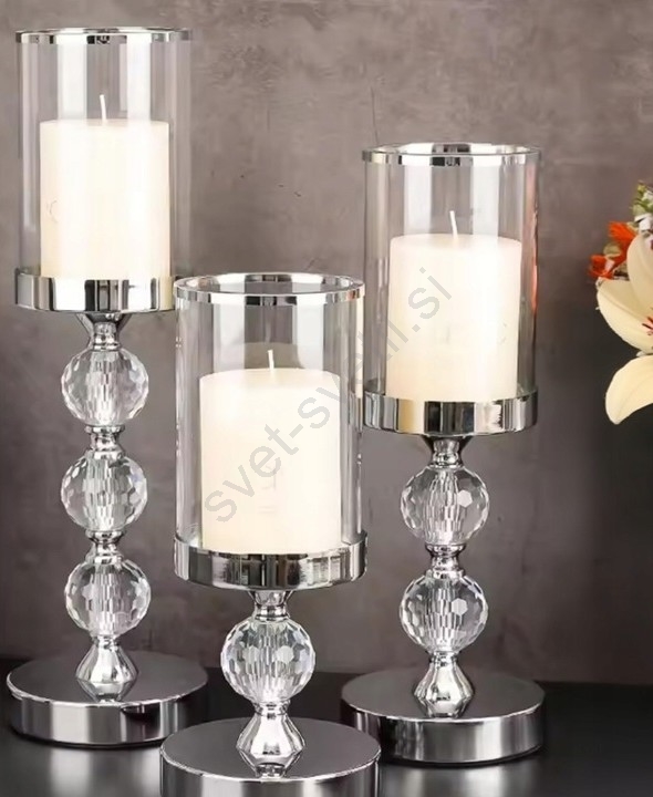 • Komplet 3 svečnikov v sijajnem kromu