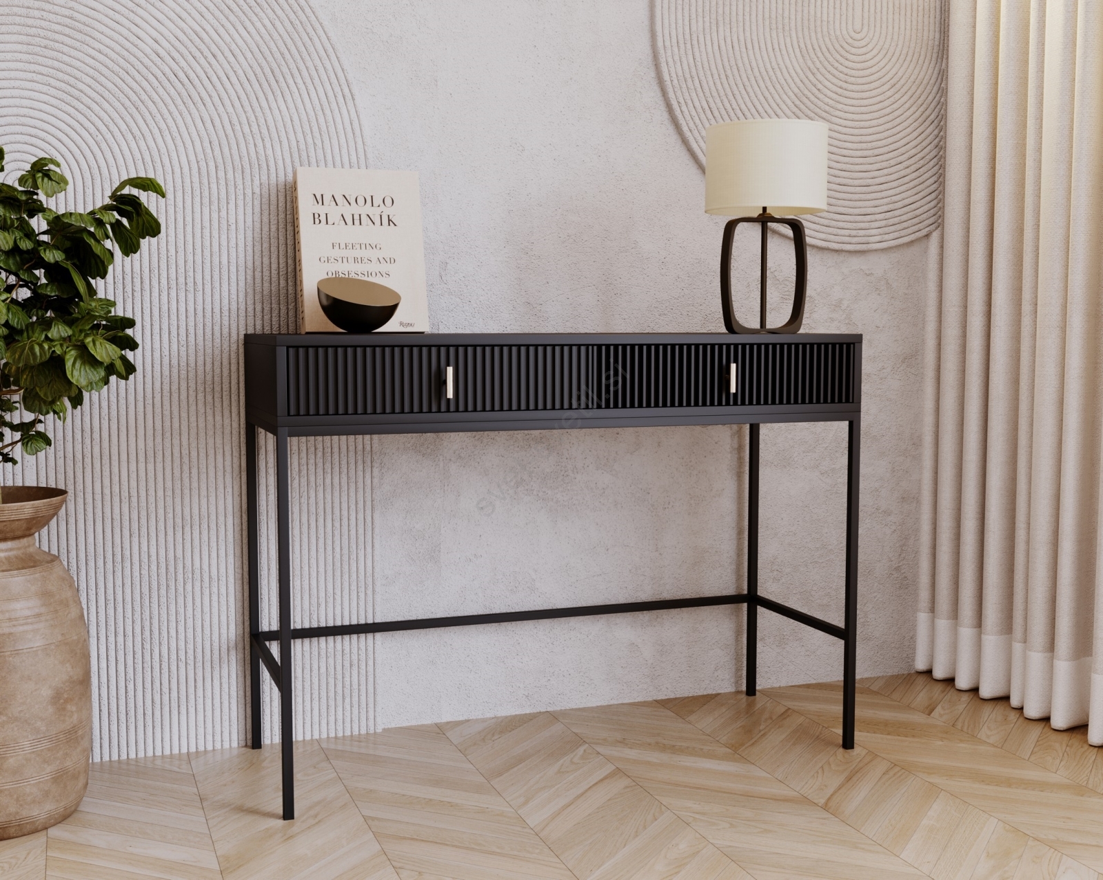 • Ponaša se z dvema predaloma, obrobljenima z navpičnim rebrastim vzorcem za prefinjen vizualni učinek.