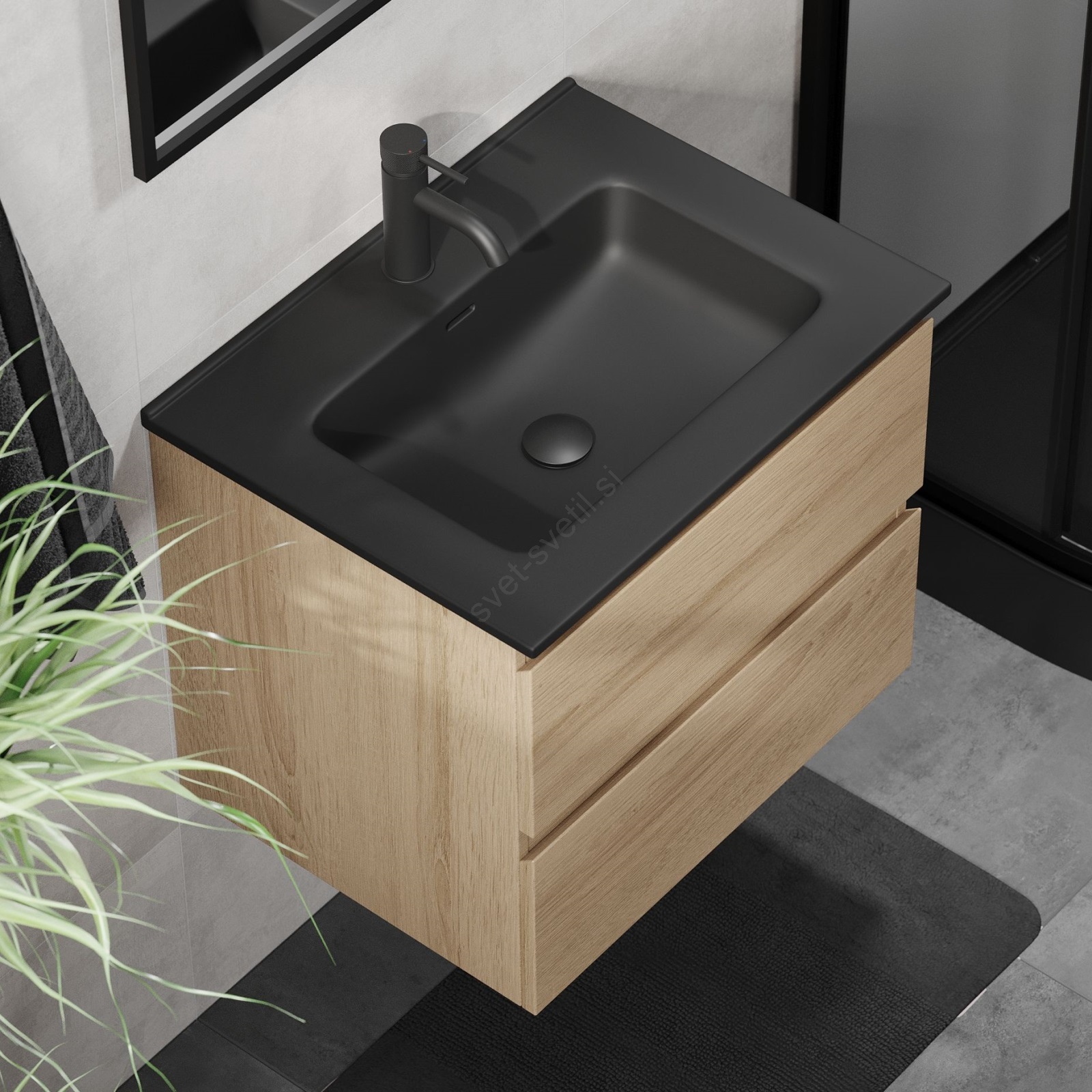 • Kopalniška omarica CONOR z umivalnikom, 61 cm, hrast/črna