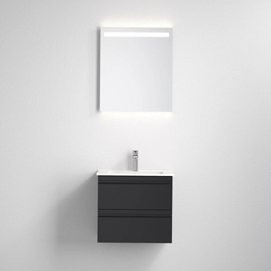Kopalniška omarica z umivalnikom VEDO + LED ogledalo LED/10W/230V IP44 črna