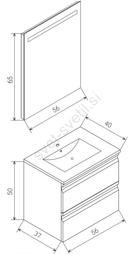 • Dimenzije spodnje omarice: 50 x 40 x 56 cm.