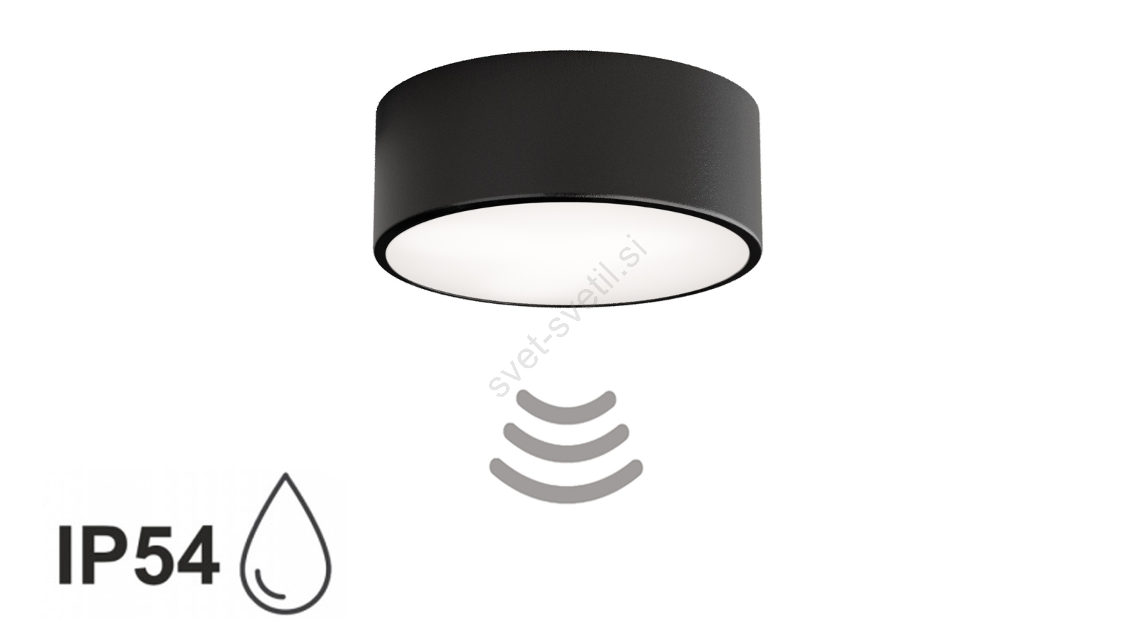 Kopalniška stropna svetilka s senzorjem CLEO 1xE27/24W/230V, premer 20 cm, IP54, črna