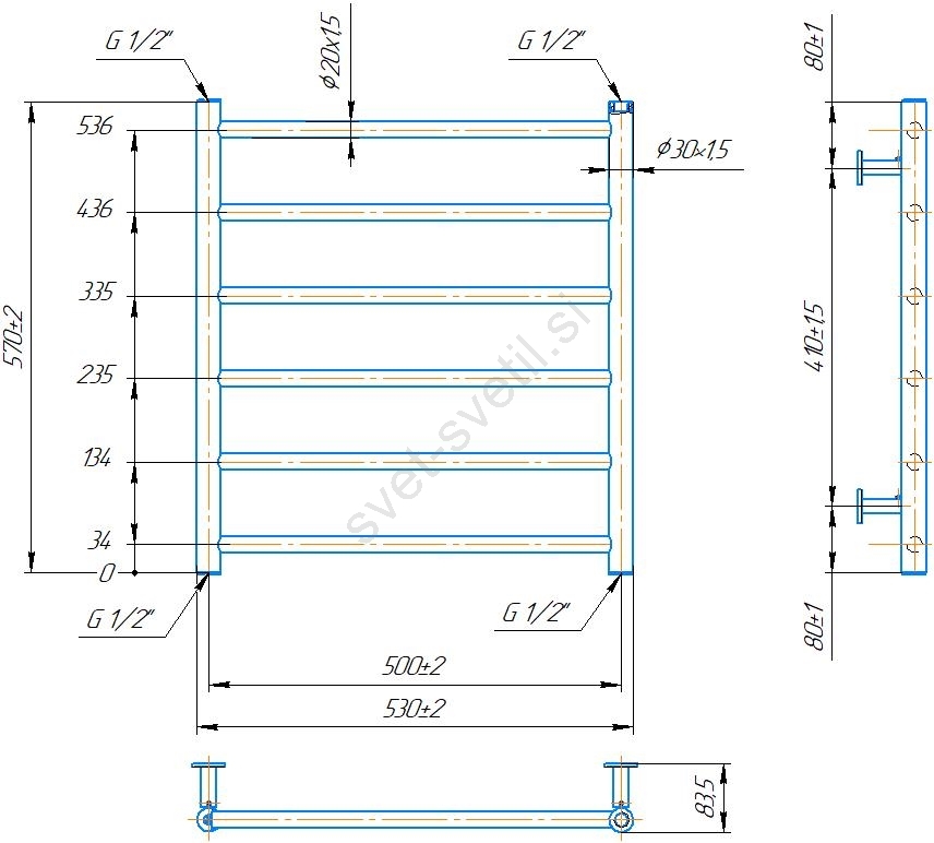 • Radiator omogoča priklop od spodaj ali diagonalno - glede na razporeditev vašega ogrevalnega sistema.