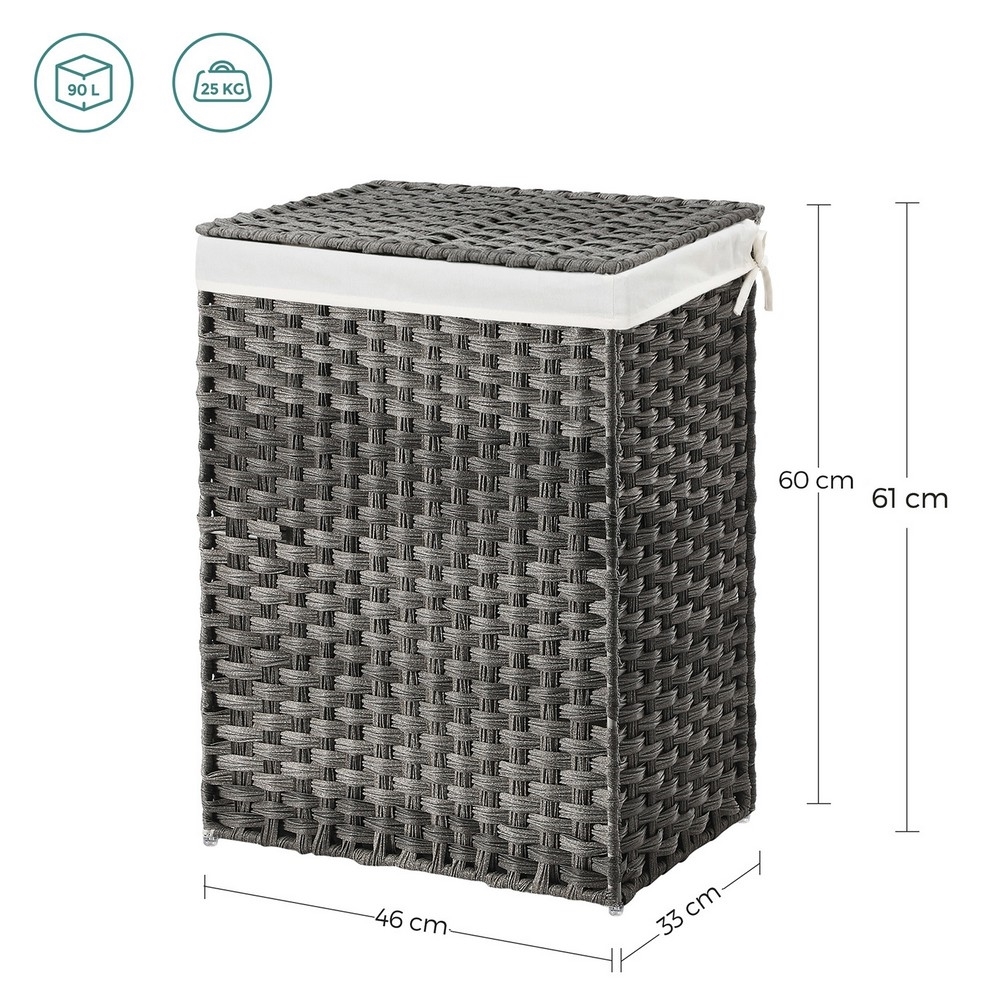 • Koš za perilo ima veliko zmogljivost - 90 litrov za vaša oblačila, brisače in posteljnino.