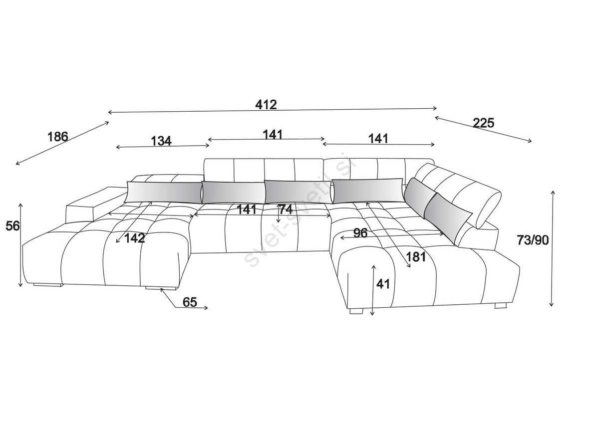 • Sofa je opremljena s štirimi nastavljivimi naslonjali za glavo, ki omogočajo individualno prilagajanje za še večje udobje.