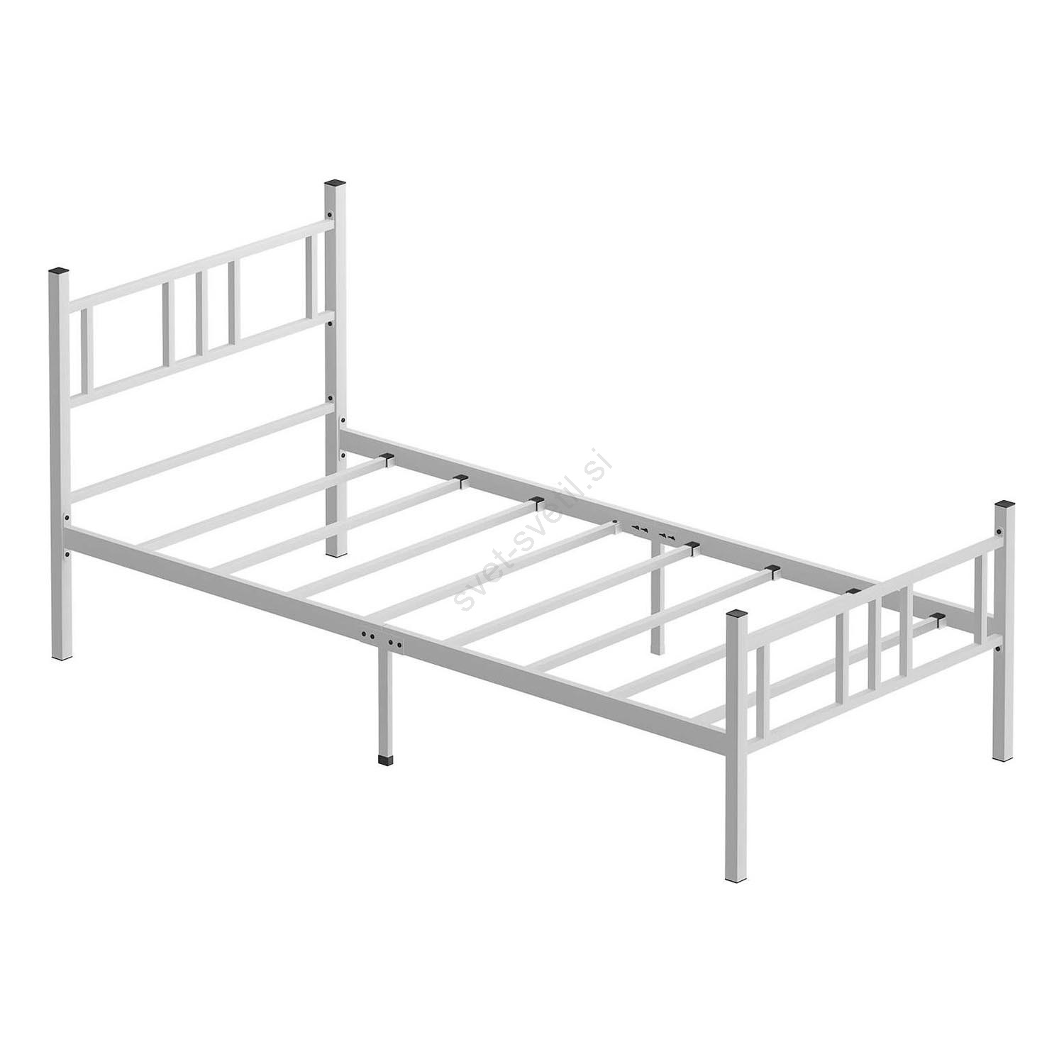 Kovinska enojna postelja PIRON 90x200 cm, bela, nosilnost 120 kg