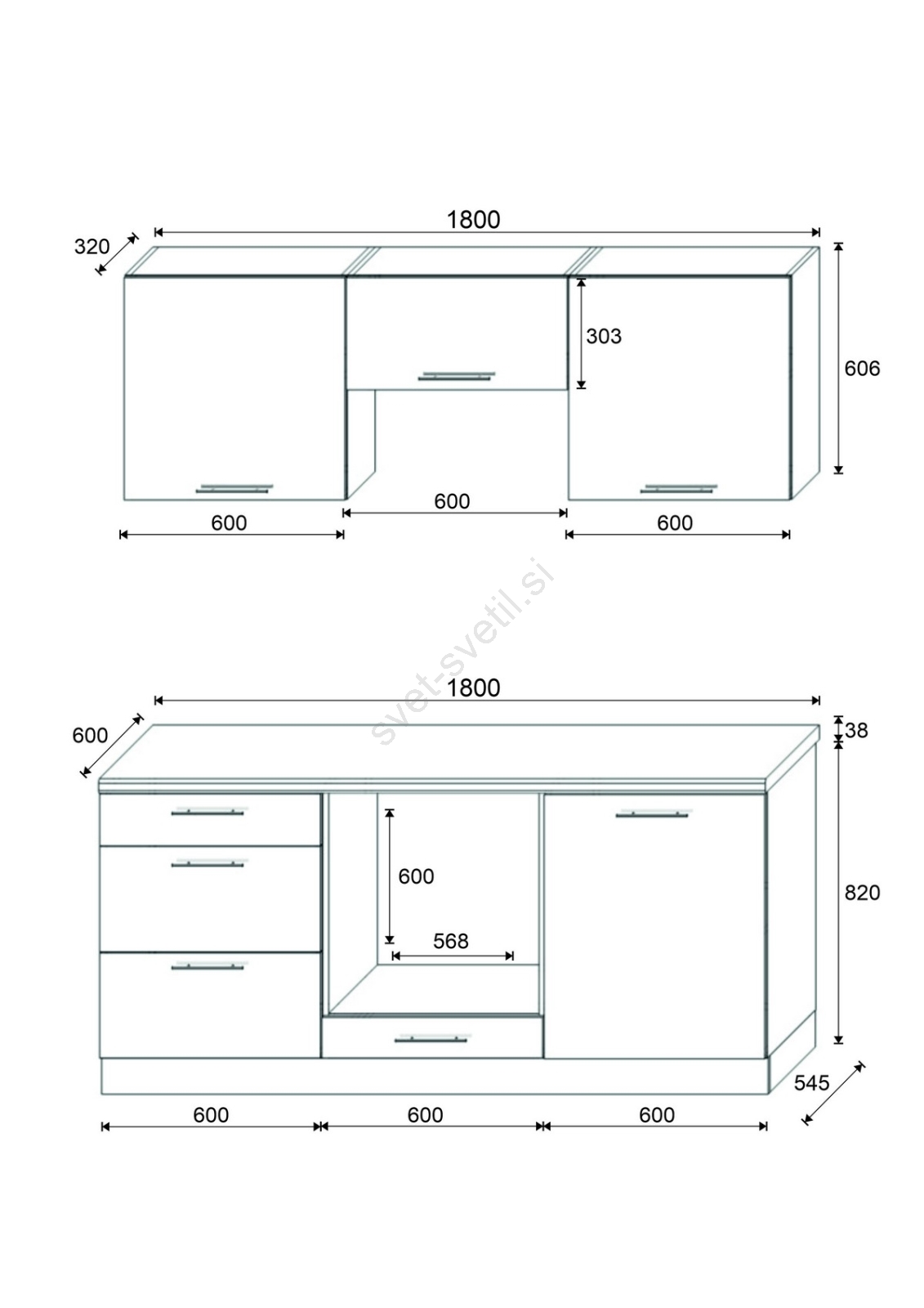 • V ceno niso vključeni električni aparati, kuhinjsko korito ali kuhinjska pipa.