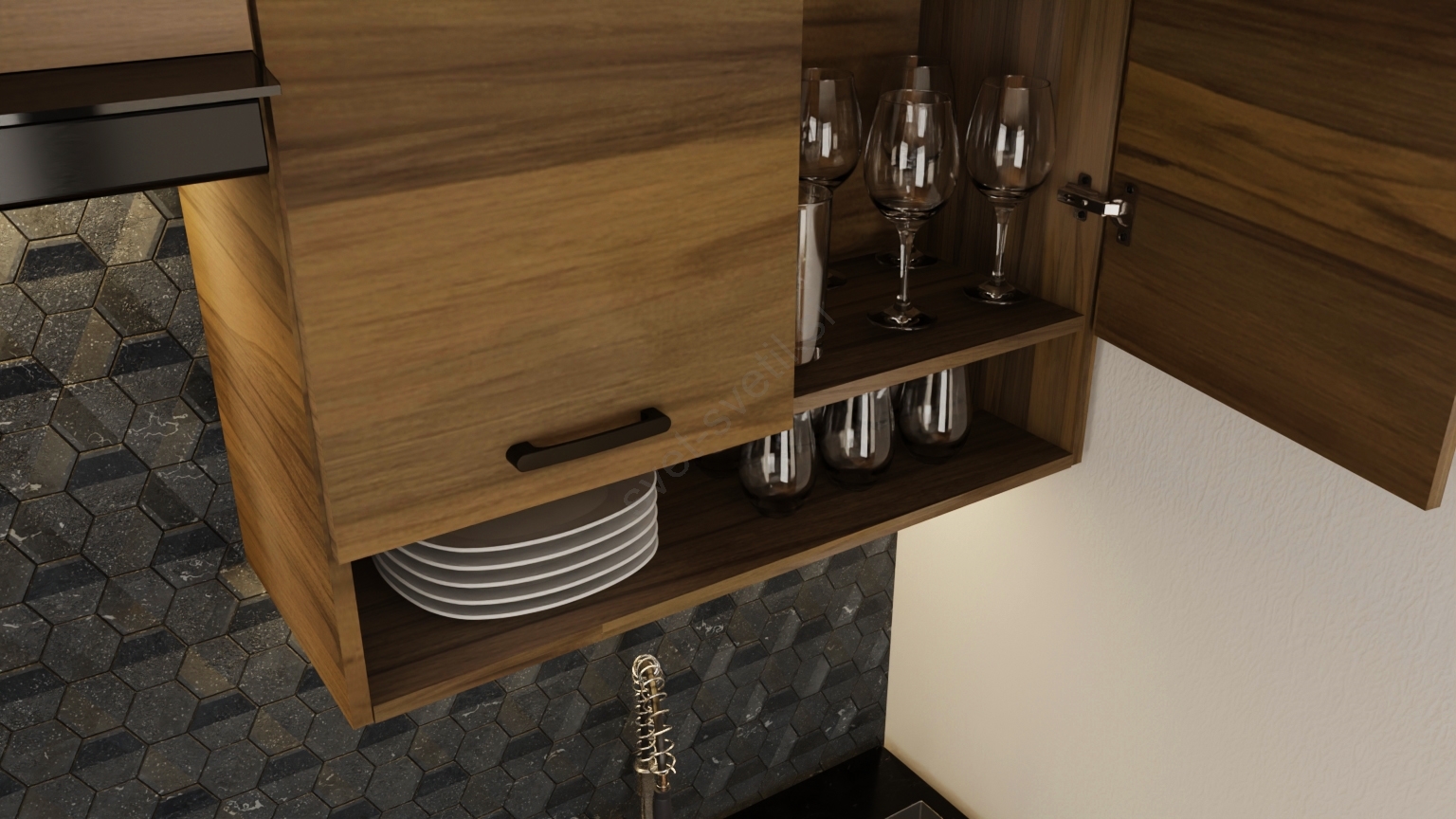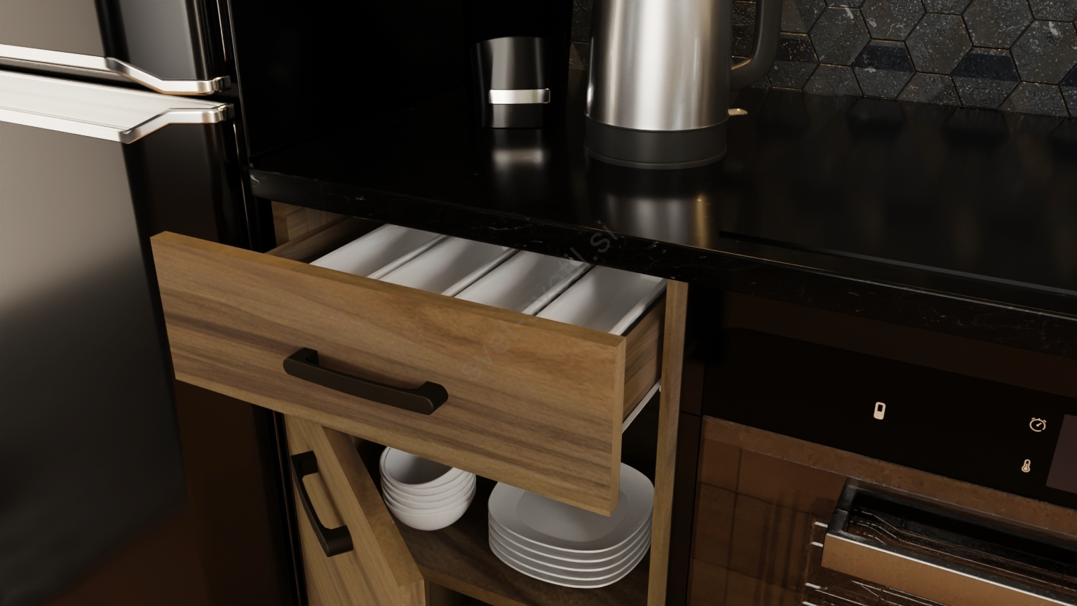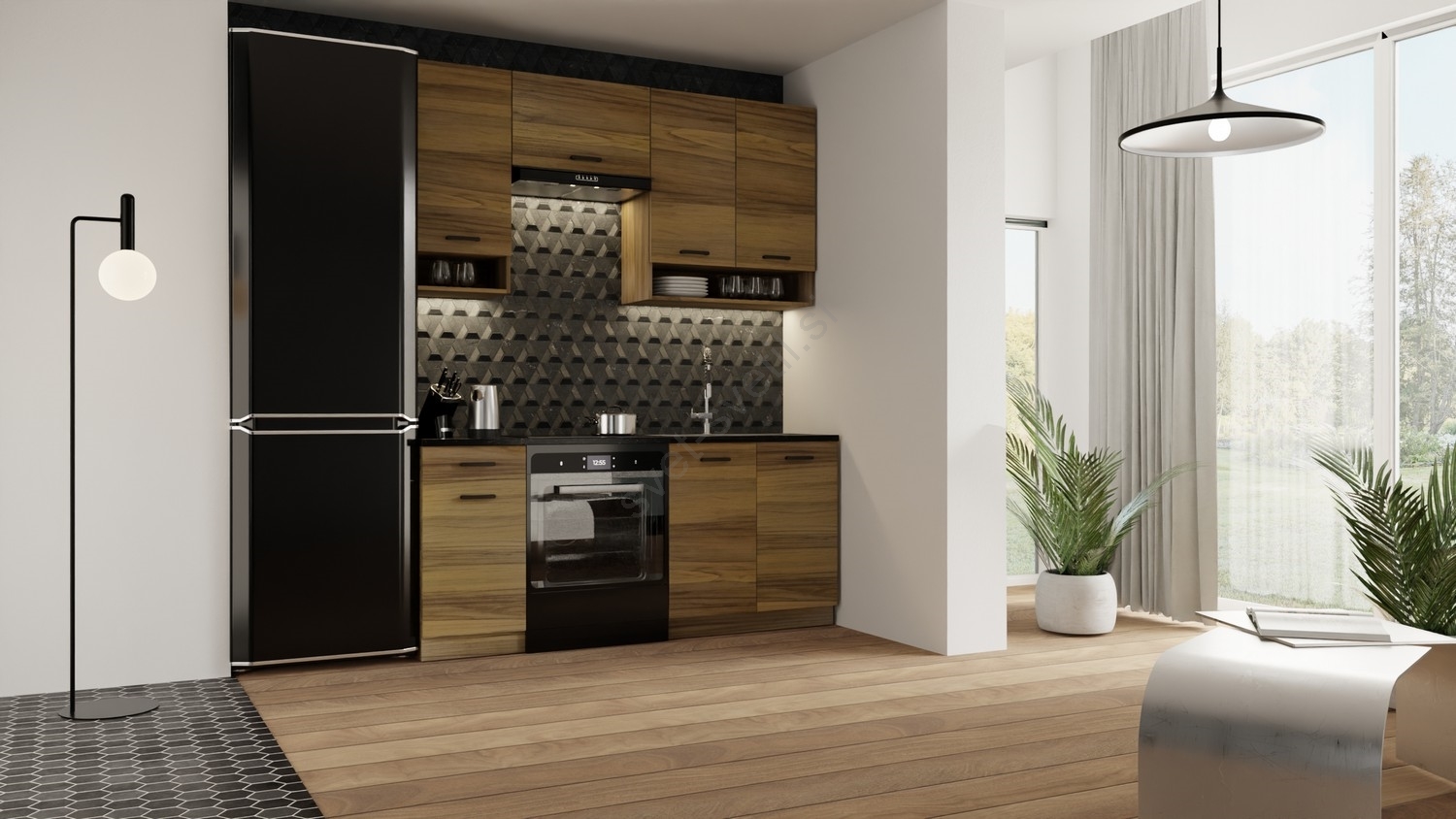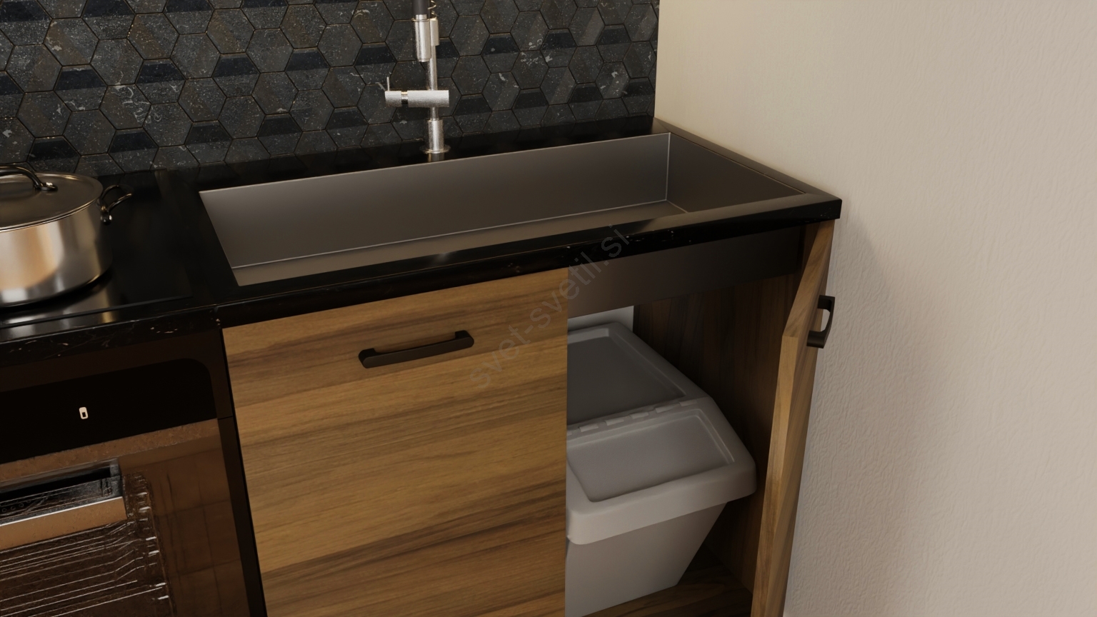 • V paket niso vključeni gospodinjski aparati, kuhinjsko korito niti kuhinjska pipa.