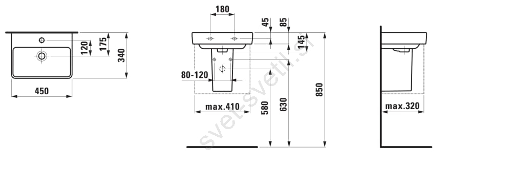 LAUFEN H8159610001041 - Umivalnik za pult/stenski PRO 45x34 cm keramika/bela