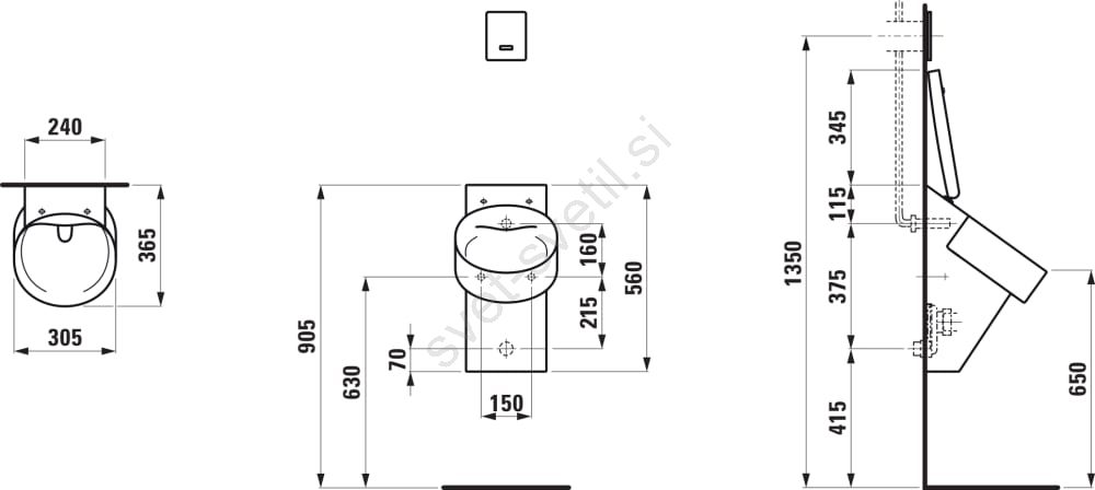 • Pisuar je opremljen z montažnimi odprtinami za pokrov (pokrov ni priložen).