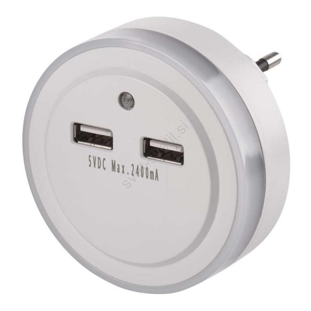LED nočna svetilka za vtičnico s fotosenzorjem+2xUSB 3xLED/0,3W/230V