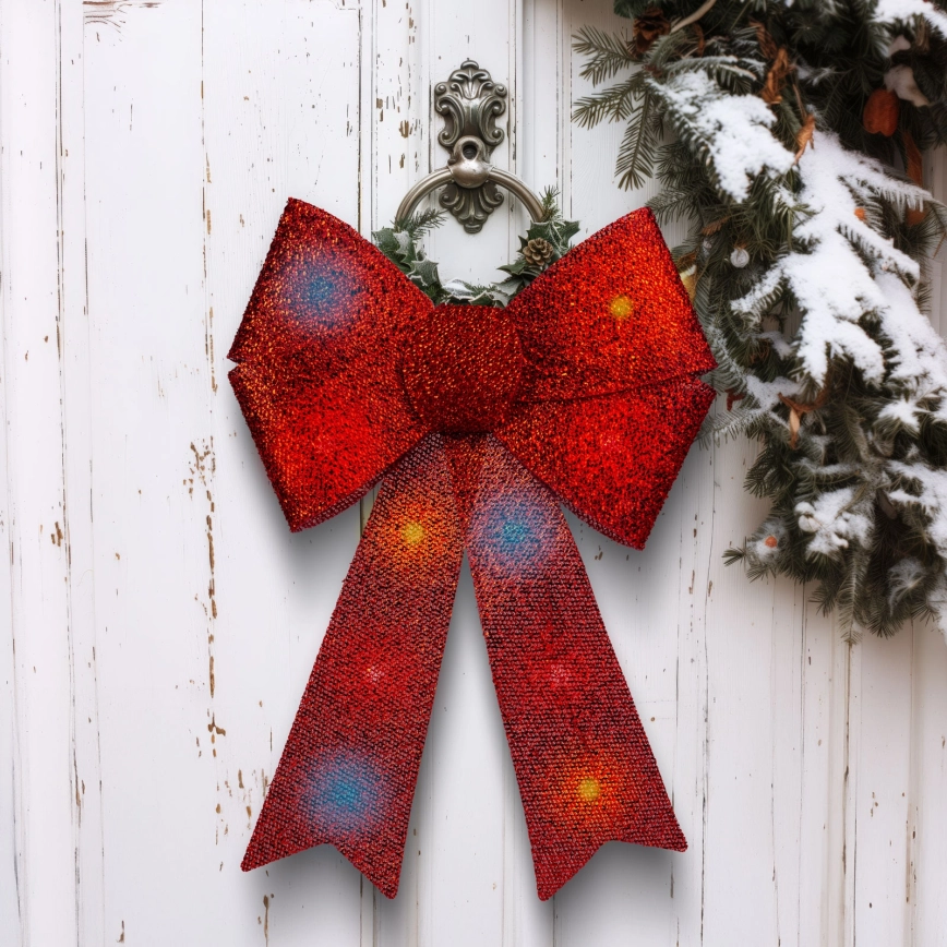 • LED RGB božična dekoracija 11xLED/3xLR44 40x30 cm z rdečo pentljo