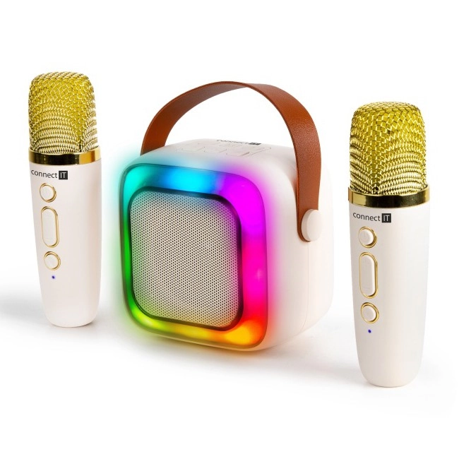 CONNECT IT CSP-1010-BG - LED RGB zvočnik z dvema brezžičnima mikrofonoma 2Mic 5W/1200 mAh + 2x 400 mAh kremno/zlata