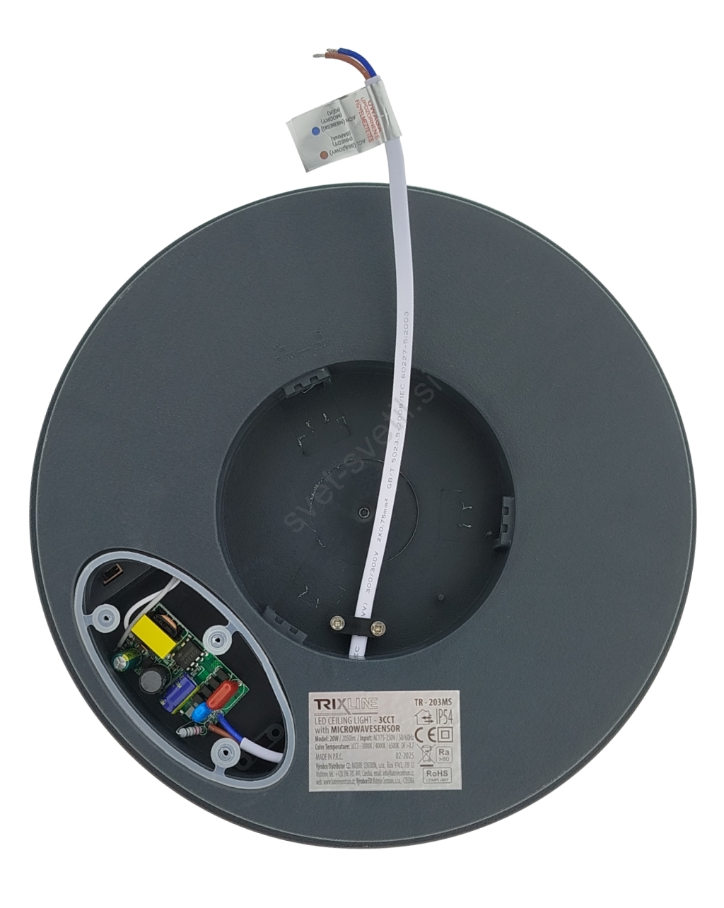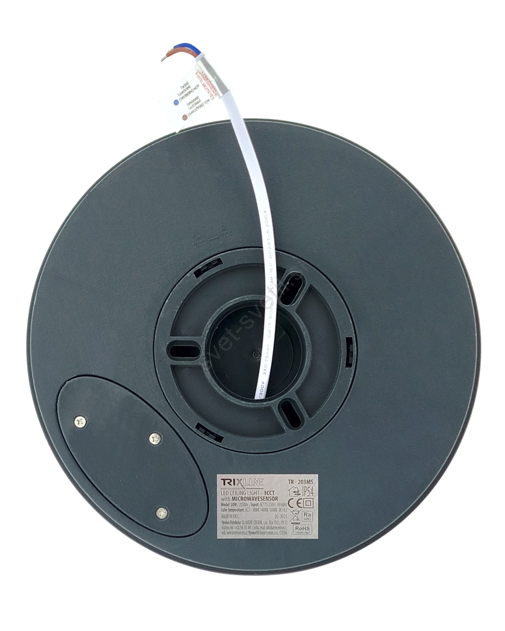 • LED kopalniška stropna svetilka s senzorjem gibanja, 20 W, 230 V, 3000/4000/6500 K, premer 23 cm, IP54, bela