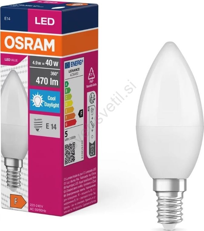 LED Žarnica VALUE B40 E14/4,9W/230V 6500K - Osram Kakovosten dizajn bo poskrbel za popolno osvetlitev vaše notranjosti. Kategorija E14 je namenjena žarnicam z enakim nosilcem. V naši spletni trgovini lahko izbirate med žarnicami s klasično žarilno nitko ali modernimi LED žarnicami, ki so energijsko varčnejše in imajo daljšo življenjsko dobo.