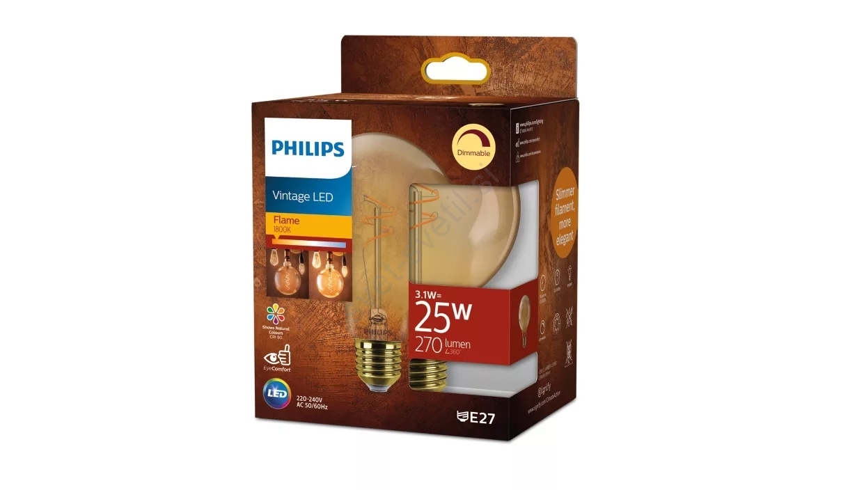 LED žarnica z zatemnjevanjem VINTAGE Philips G95 E27/3,1W/230V 1800K