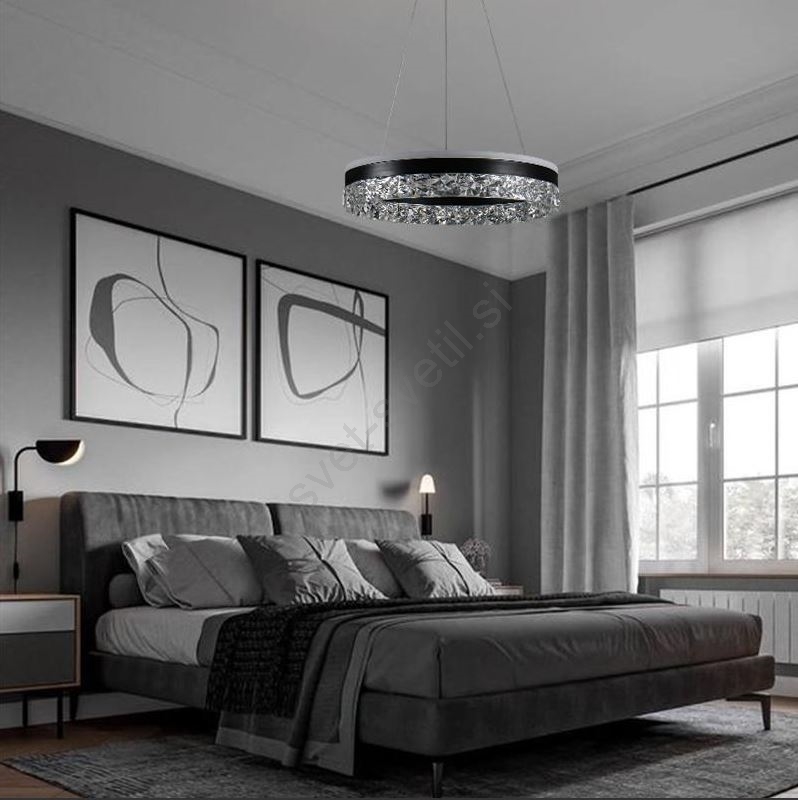 • LED Zatemnitveni kristalni lestenec na vrvici LED/90W/230V 3000-6500K črna + Daljinski upravljalnik