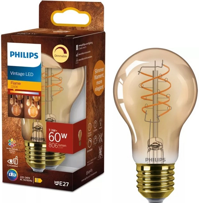 • LED zatemnjevalna žarnica VINTAGE Philips A60 E27/7,3W/230V 2200K