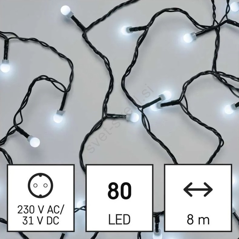 LED zunanji božični niz 80xLED/8 funkcij 13m hladno bela IP44