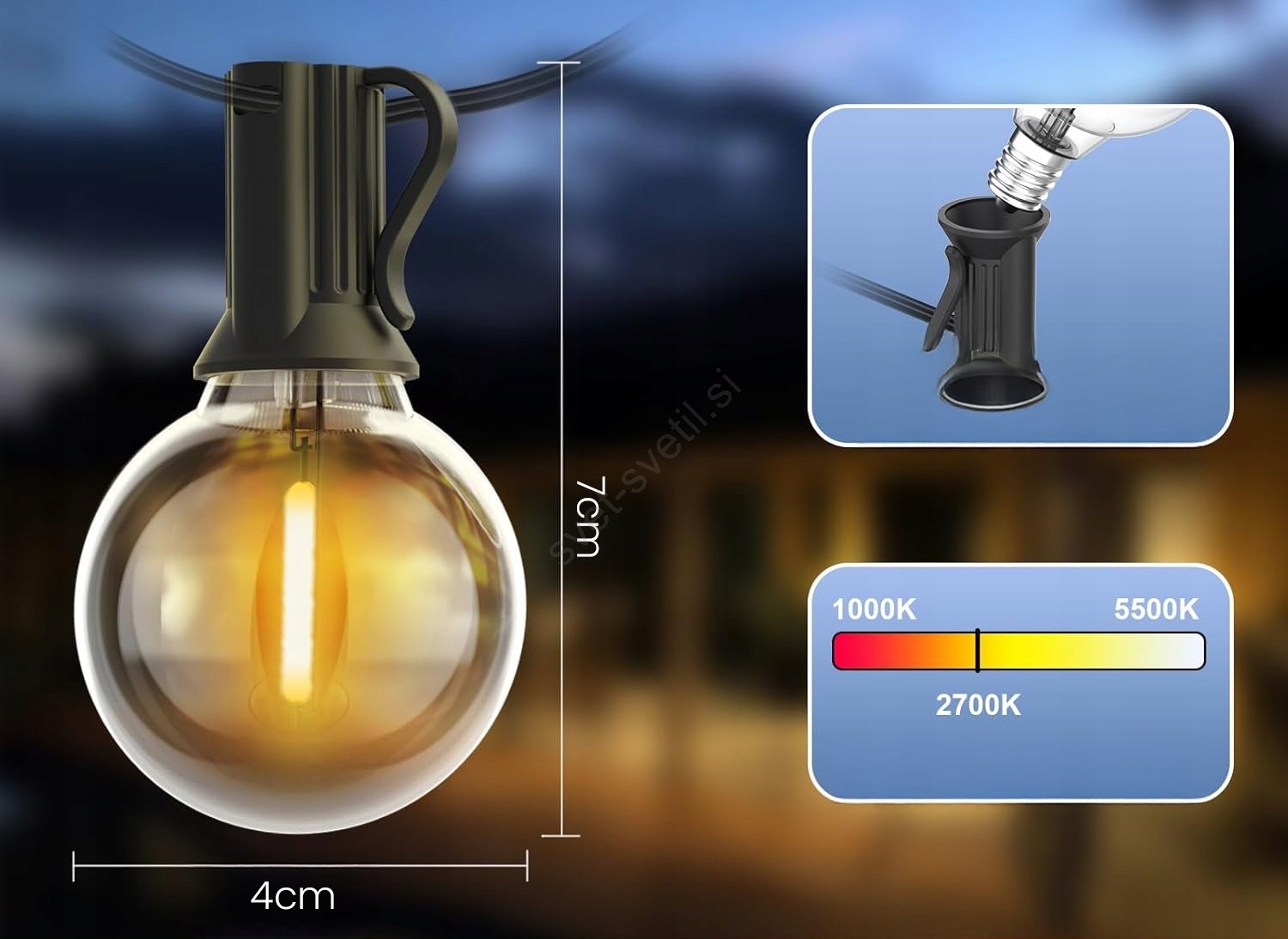 LED zunanji dekorativni niz luči 20xE12/1W/230V 20 m IP65 črn