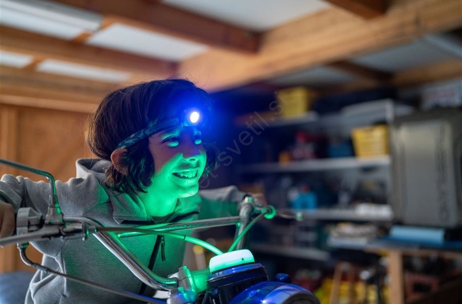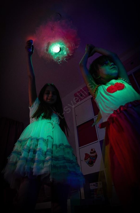 • Ponuja štiri barve svetlobe – belo, rdečo, zeleno in modro – ter tudi utripajoč način, ki popestri vsako otroško zabavo ali večerno igro.