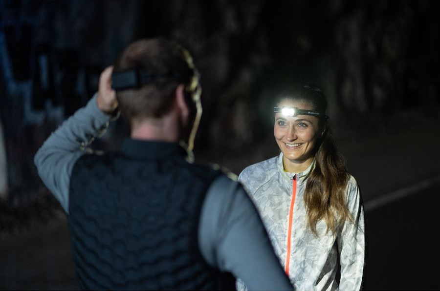 • Zmogljiva in lahka čelna svetilka, zasnovana posebej za mestne in terenske tekače, ki potrebujejo močno in enakomerno osvetlitev med nočnim treningom.