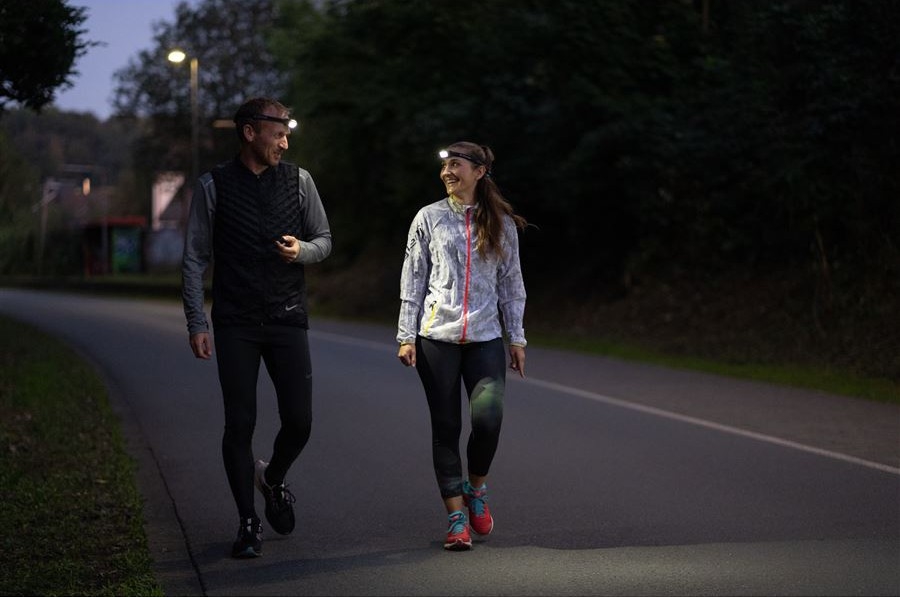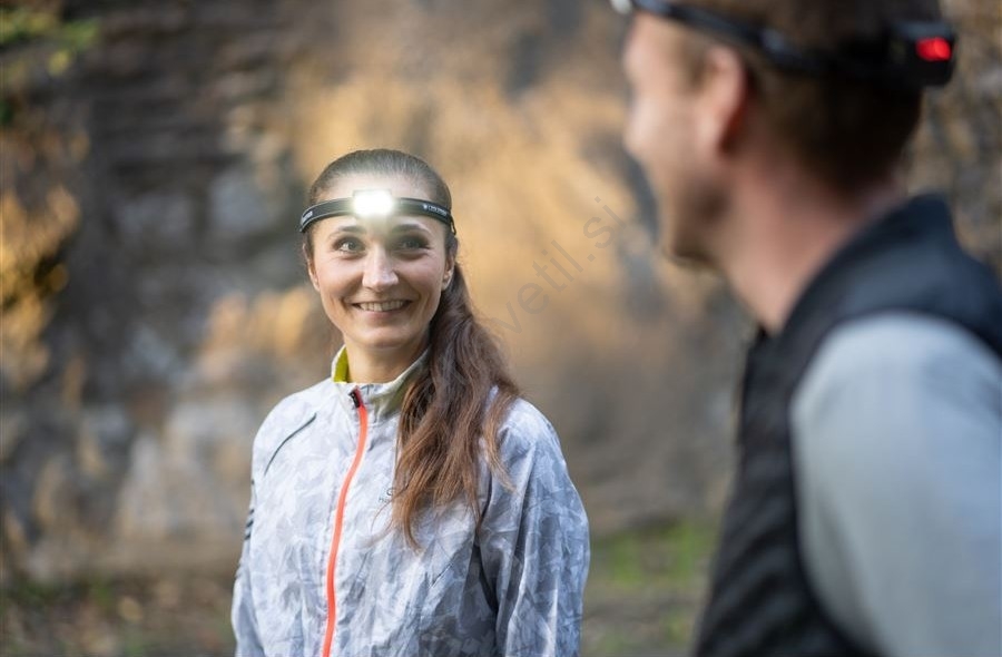 • Čelno svetilko je mogoče pritrditi tudi na prsni pas, s čimer preprečite zaslepitev tekačev ali pešcev, ki prihajajo nasproti.