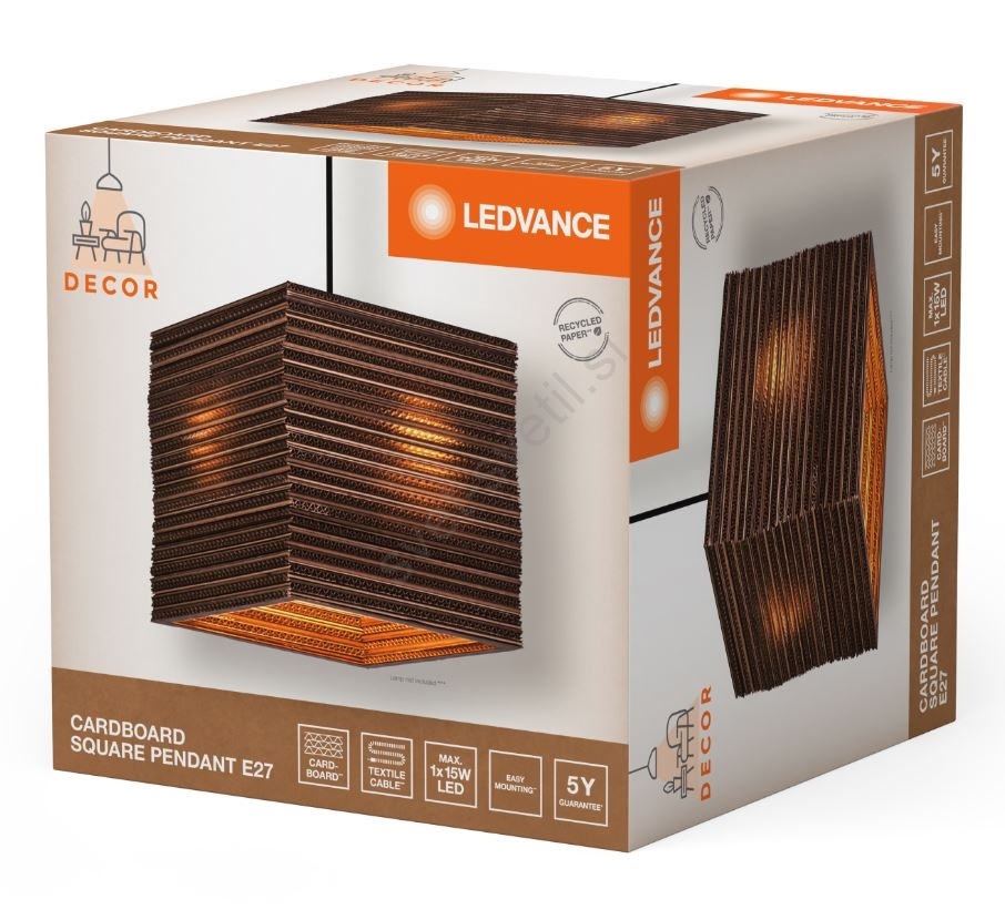 Ledvance - Lestenec na vrvici DECOR CARDBOARD 1xE27/15W/230V 25x25 cm