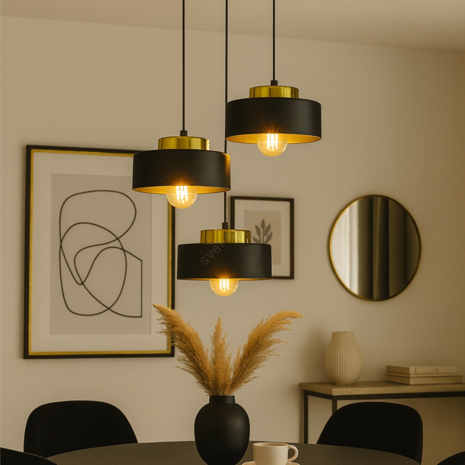 Lestenec na vrvici IGNIA 3xE27/60W/230V, črna/zlata je značilen lep in funkcionalen dizajn. Za svetilko je primerna žarnica z vznožkom E27. Tukaj lahko kupite ostale žarnice po ugodnih cenah.