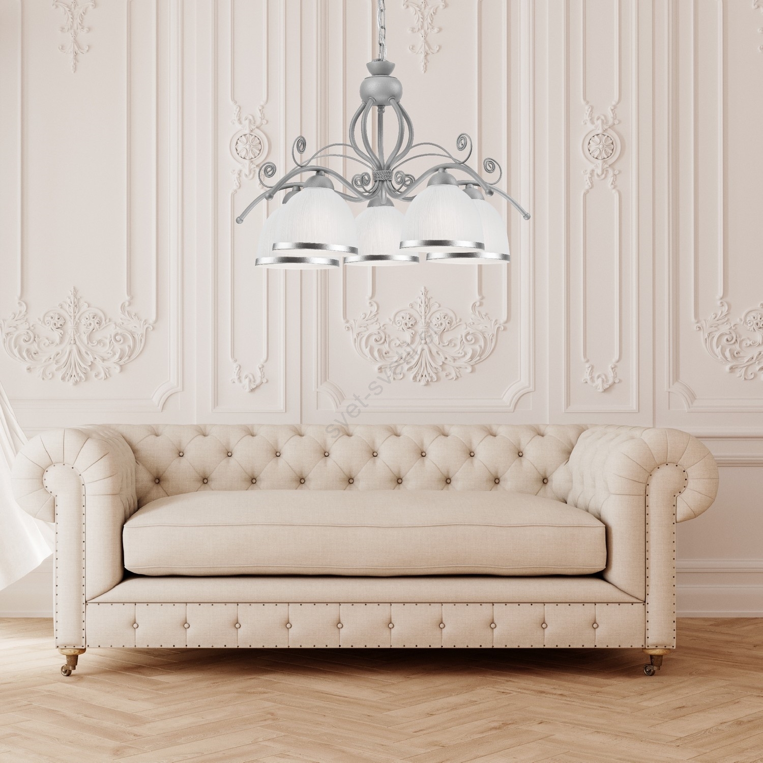 • Lestenec na verigi RETRO II 5xE27/60W/230V, v beli barvi