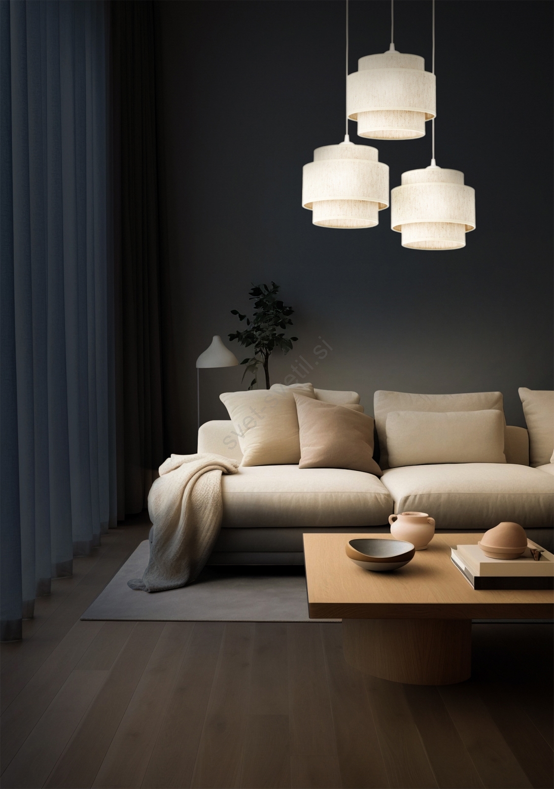 • Viseči lestenec na vrvici BOHO 3xE27/60W/230V kremna/juta