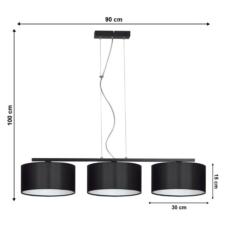 Lestenec na vrvici ASTRA 3xE27/60W/230V črna