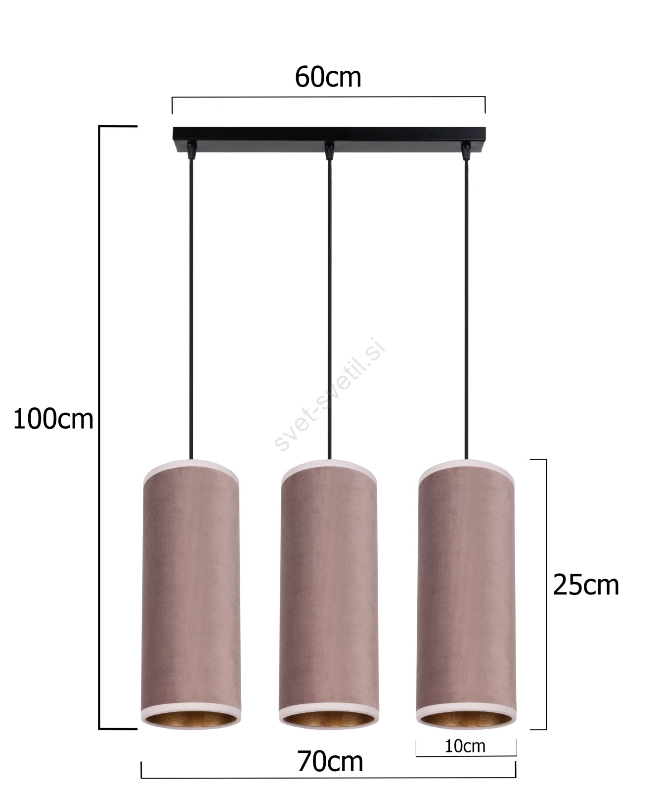 Lestenec na vrvici AVALO 3xE27/60W/230V roza/baker