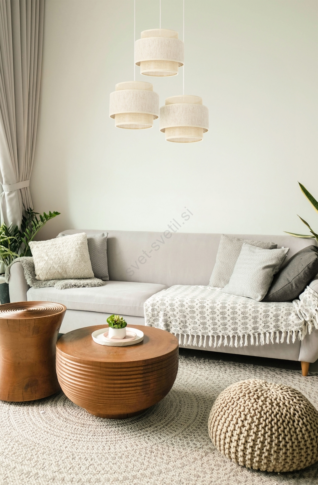 • Viseči lestenec na vrvici BOHO 3xE27/60W/230V kremna/juta
