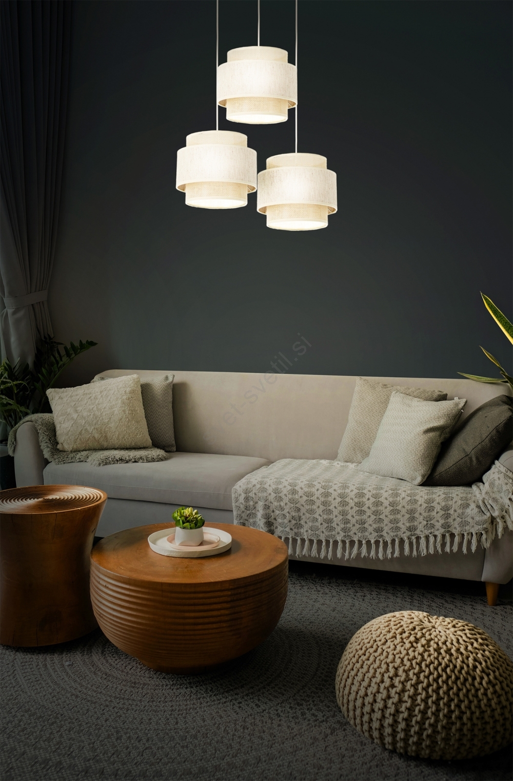 • Lestenec na vrvici BOHO 3xE27/60W/230V juta/kremna