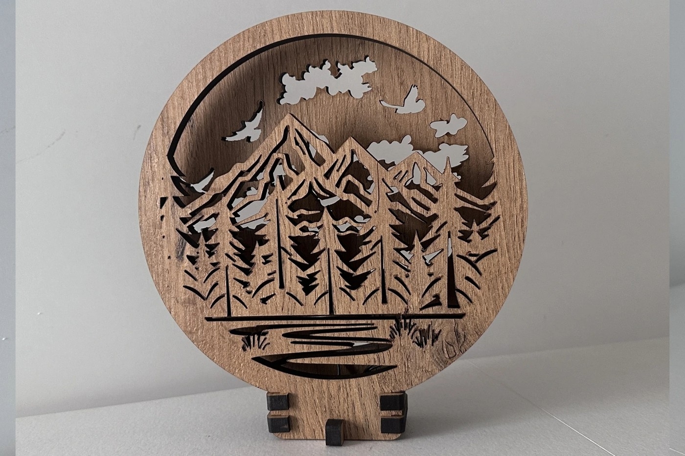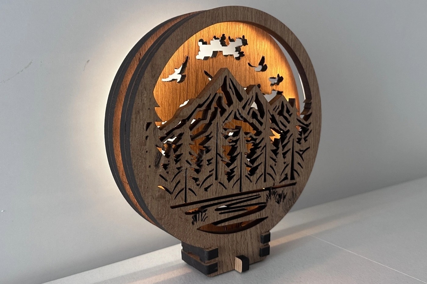 Li-Go 23583/DUB2 - Namizna LED dekoracija z zatemnitvijo LED/12W/230V 20x22 cm hrast/Gore in gozd
