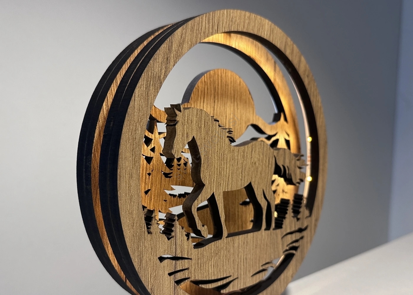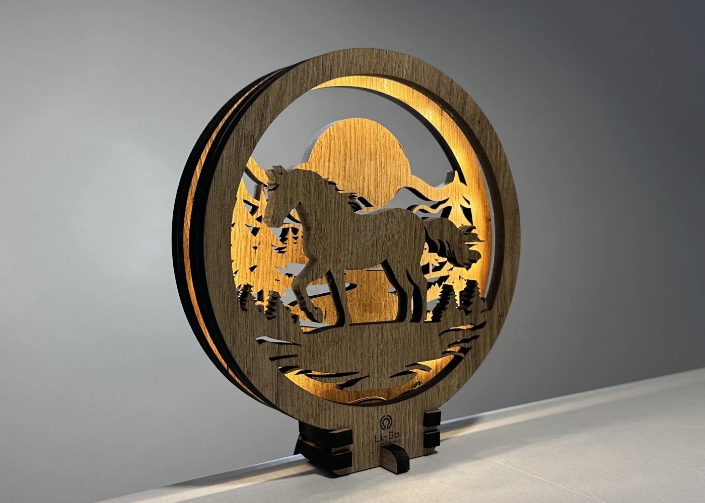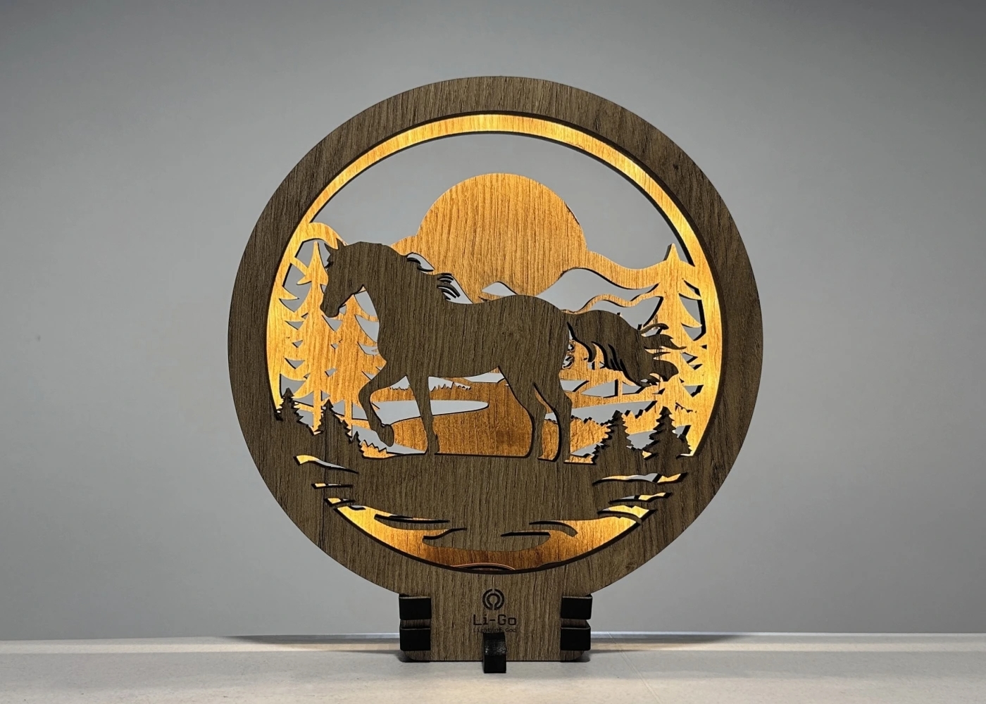 Li-Go 23598/DUB2 - Zatemnjiva LED namizna dekoracija LED/12W/230V 20x22 cm hrast/konj
