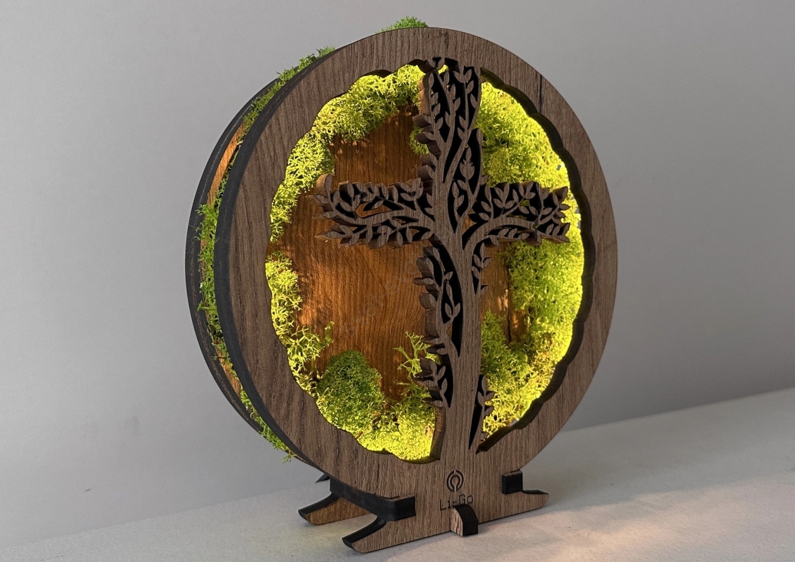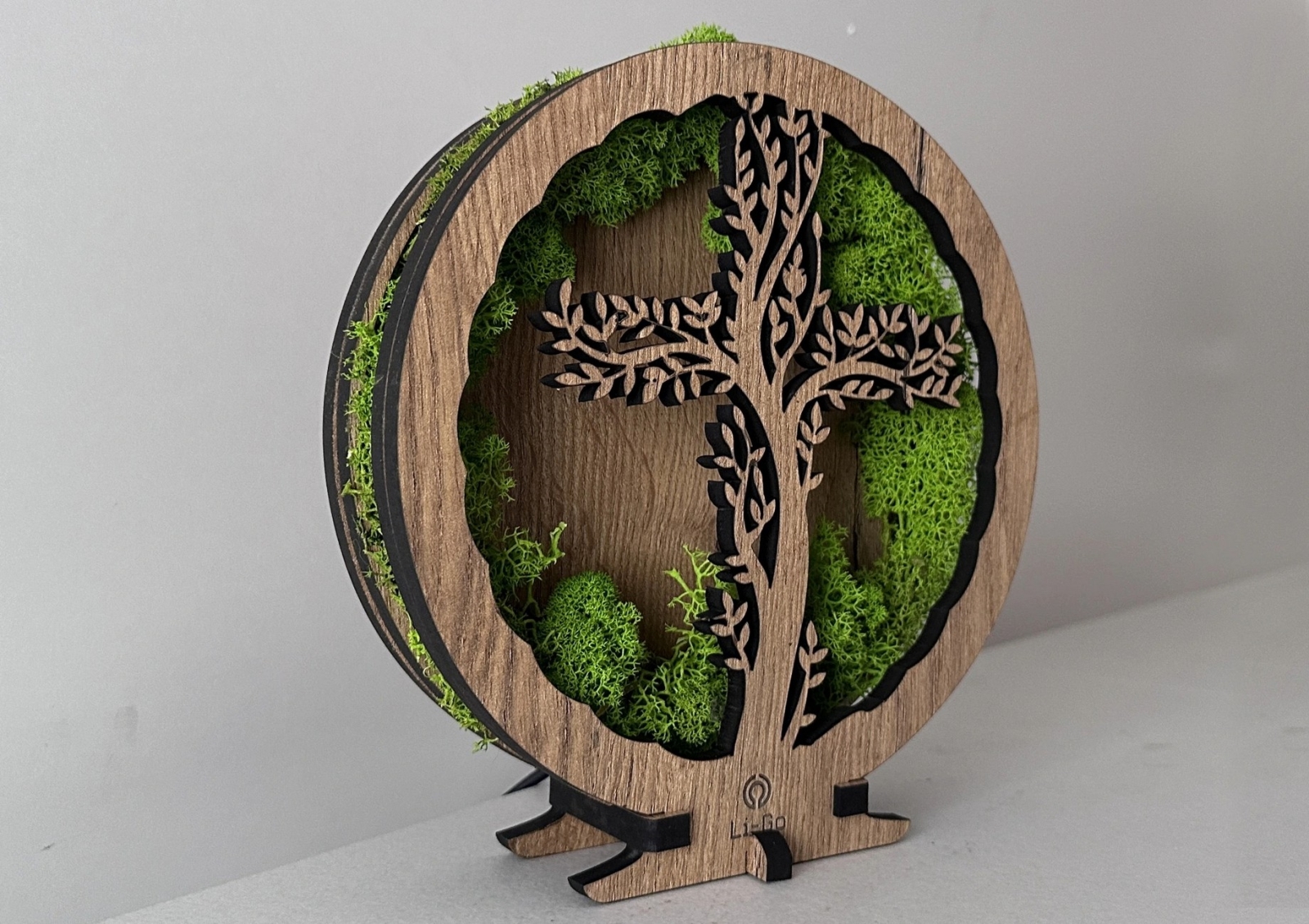 Li-Go 23622/DUB2 - LED zatemnjiva namizna dekoracija LED/12W/230V 20x22 cm hrast/Križ v mahu