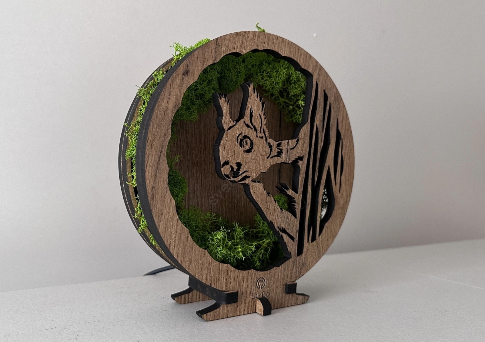 Li-Go 23625/DUB2 - LED Zatemnjevalna namizna dekoracija LED/12W/230V 20x22 cm hrast/veverica iz mahu