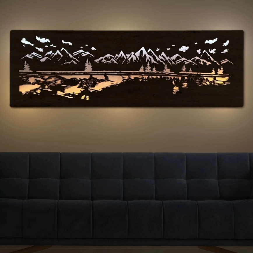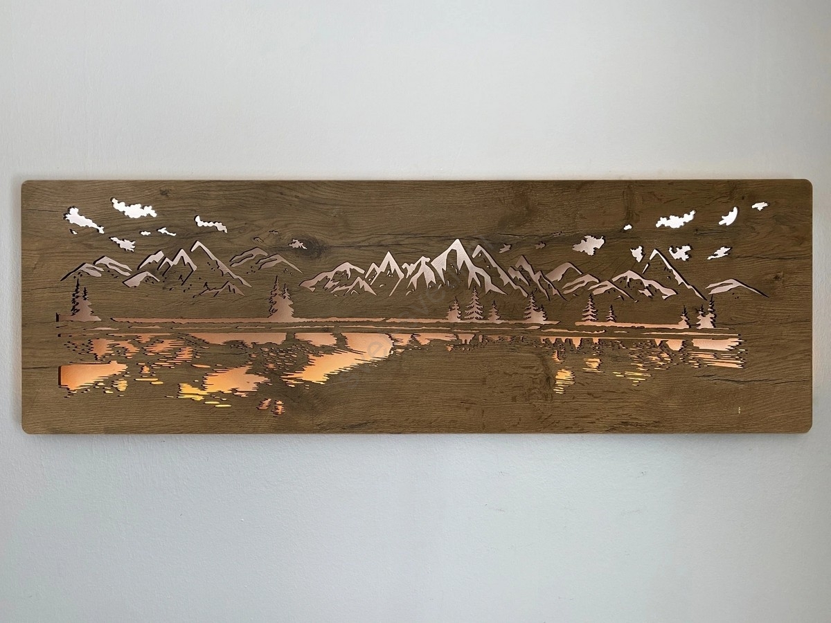 Li-Go 4778/A/4 - LED stenska dekoracija z zatemnjevanjem LED/10W/5V 30000 mAh 120x40 cm hrast/jezero