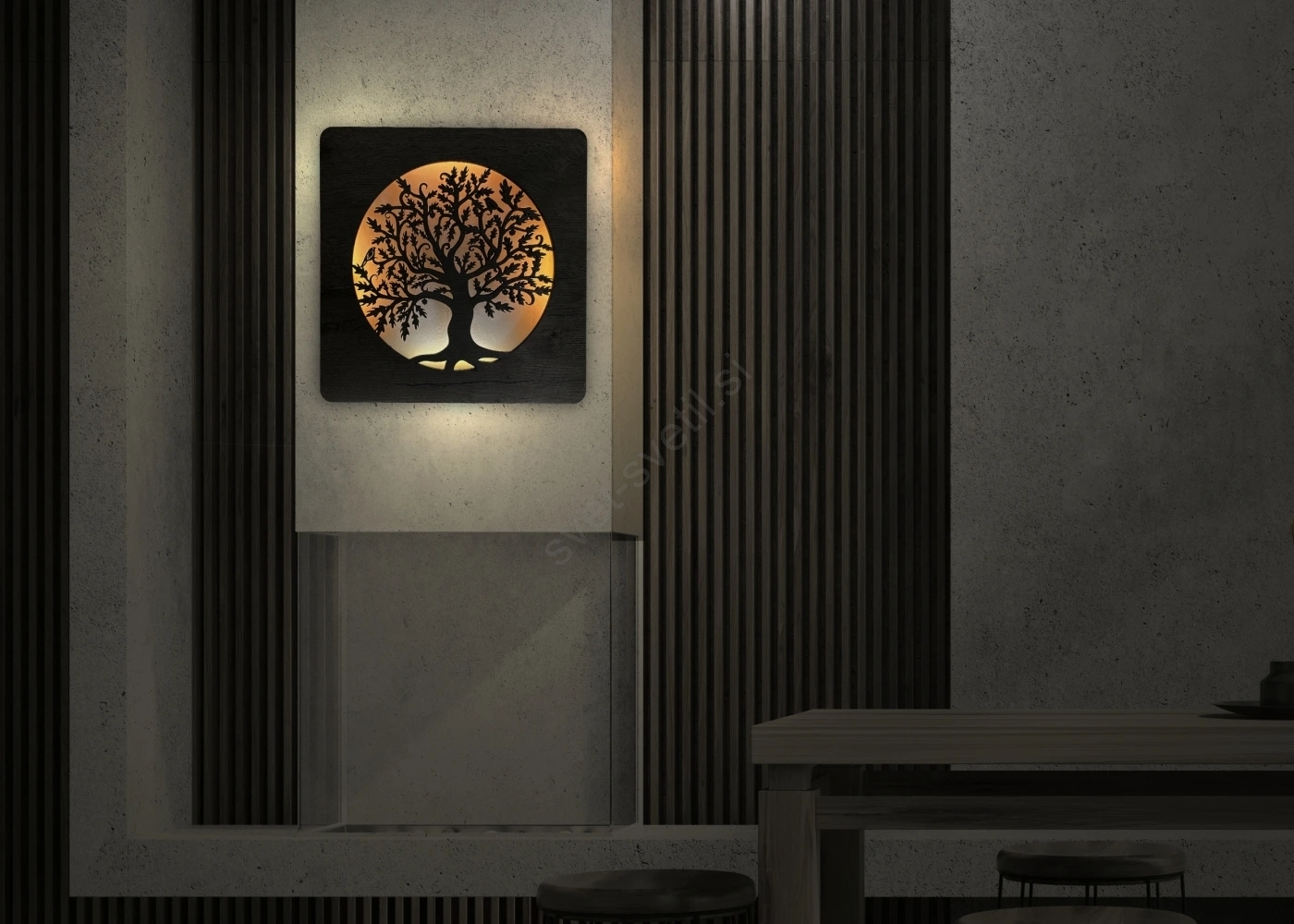 • Stenska svetilka v obliki slike z edinstvenim izrezljanim motivom.